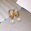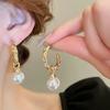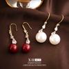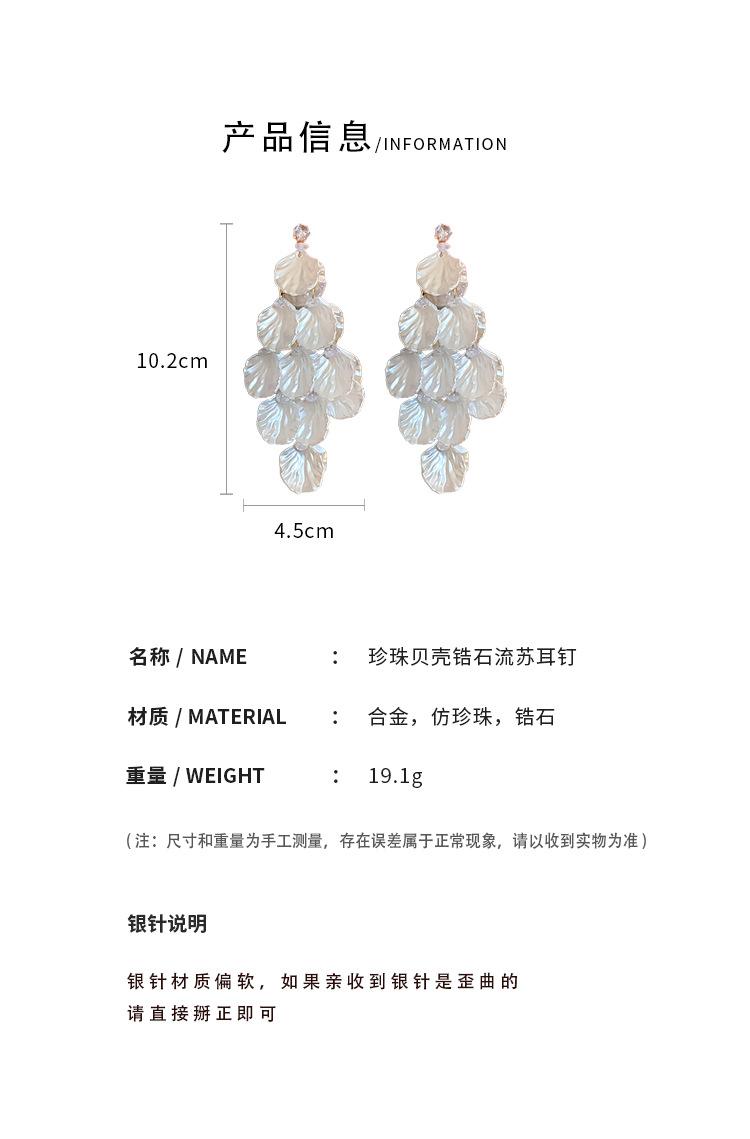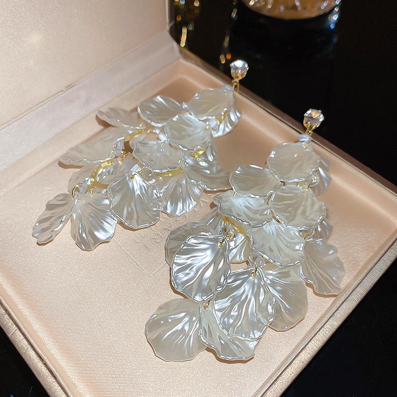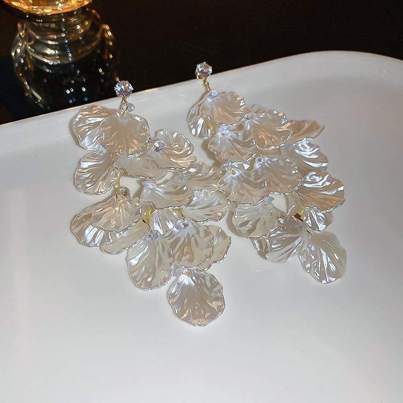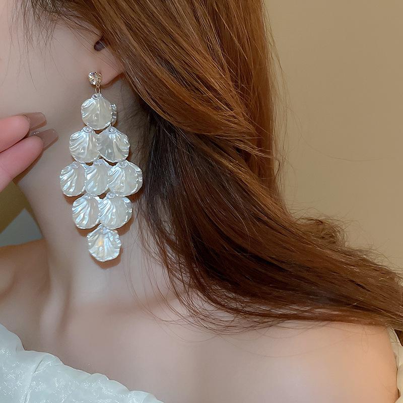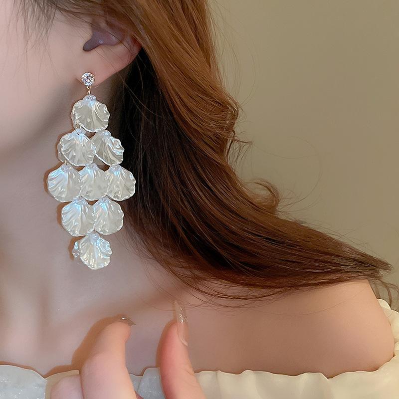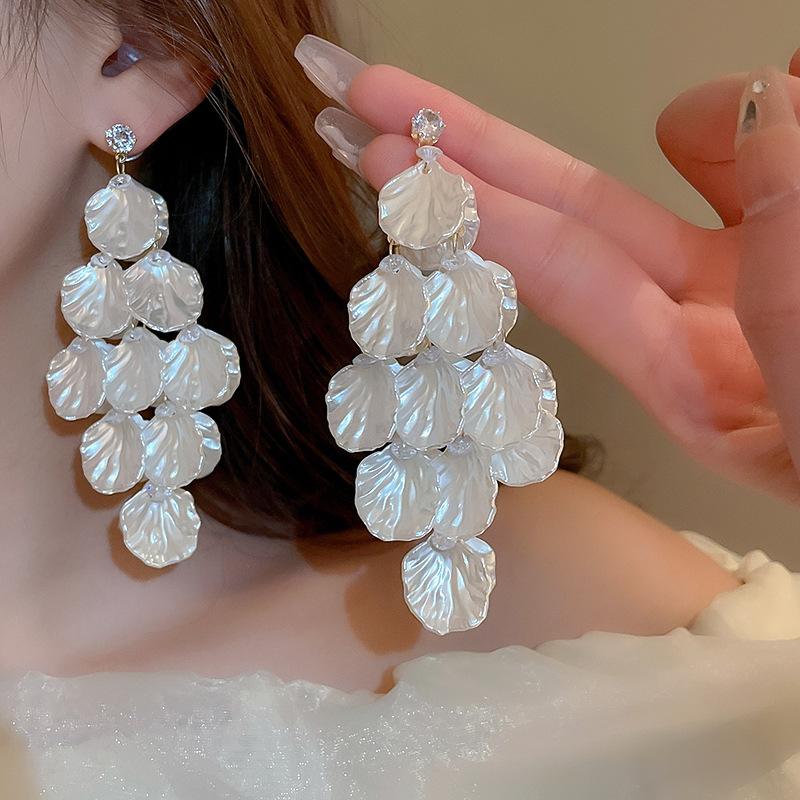 Pendientes de plata con borlas de flores de concha de imitación de perla de estilo festivo, pendientes de nicho de temperamento francés de alta moda para mujer