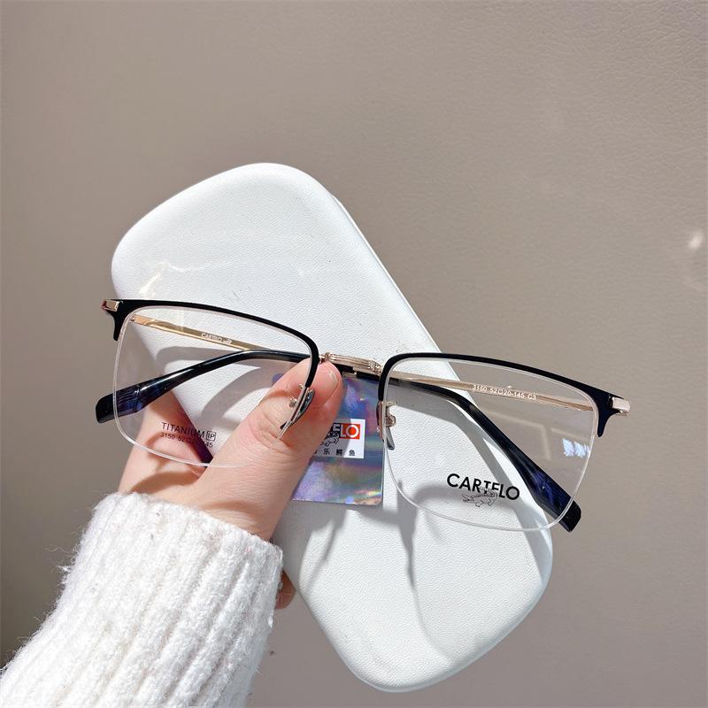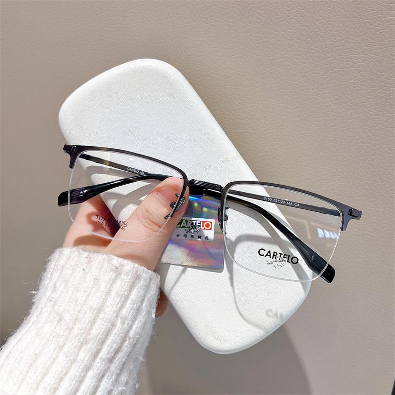 Gafas de titanio para cejas 2024 de 52 pulgadas, montura media, para negocios informales, para hombre, que pueden combinar lentes de miopía con montura de titanio ultraligera de grados.