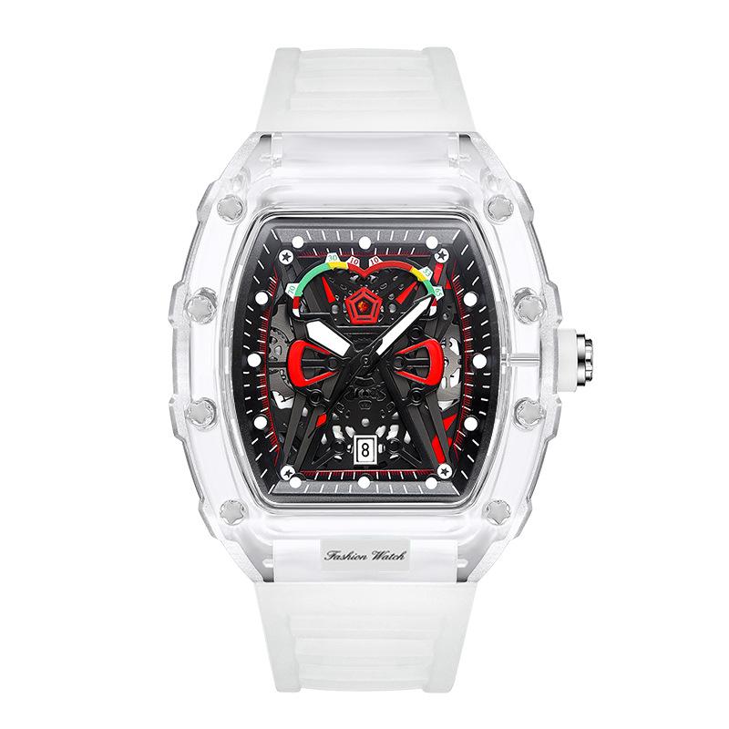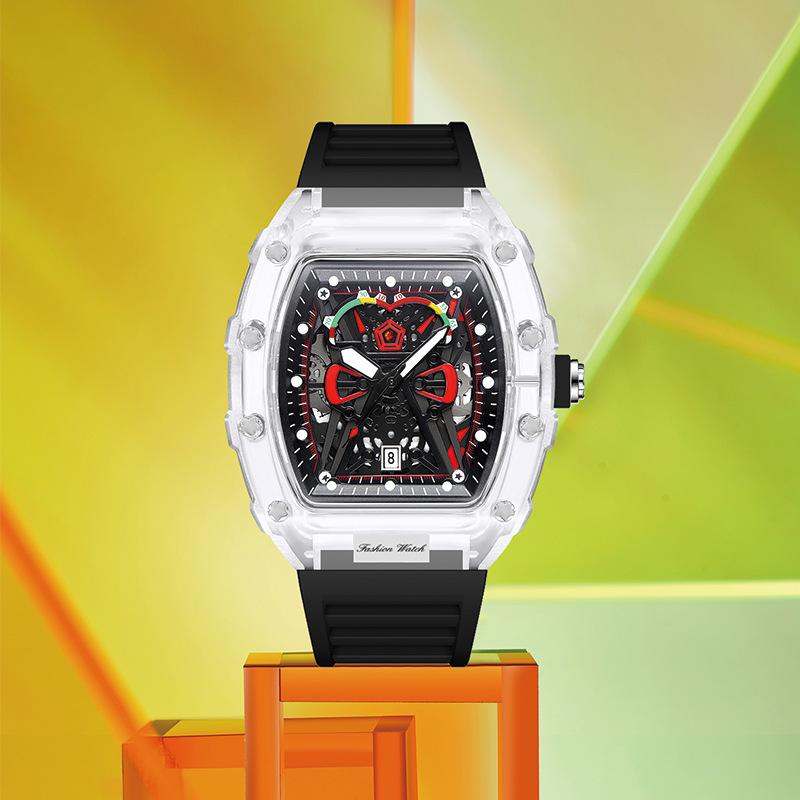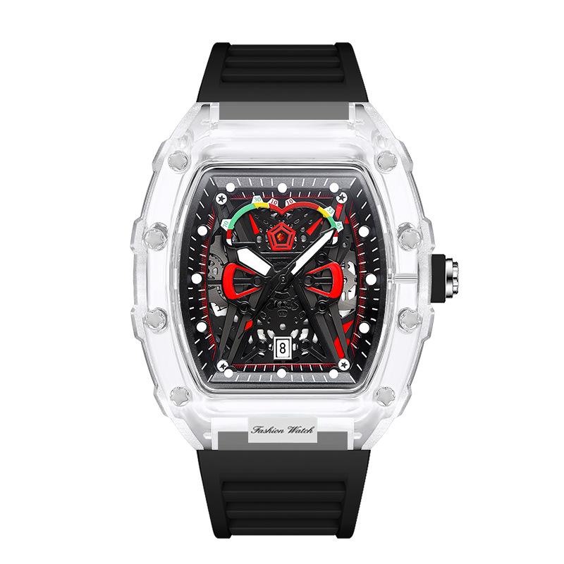 Reloj de cuarzo de barril de vino personalizado, venta al por mayor, reloj transparente de moda para hombre, reloj impermeable al por mayor.