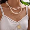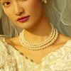 Collar de perlas de vidrio multicapa para mujer, collar de tres capas, collar nupcial vintage, cadena de cuentas redondas, cadena corta para clavícula.