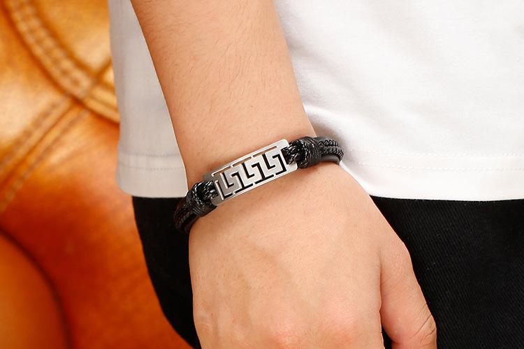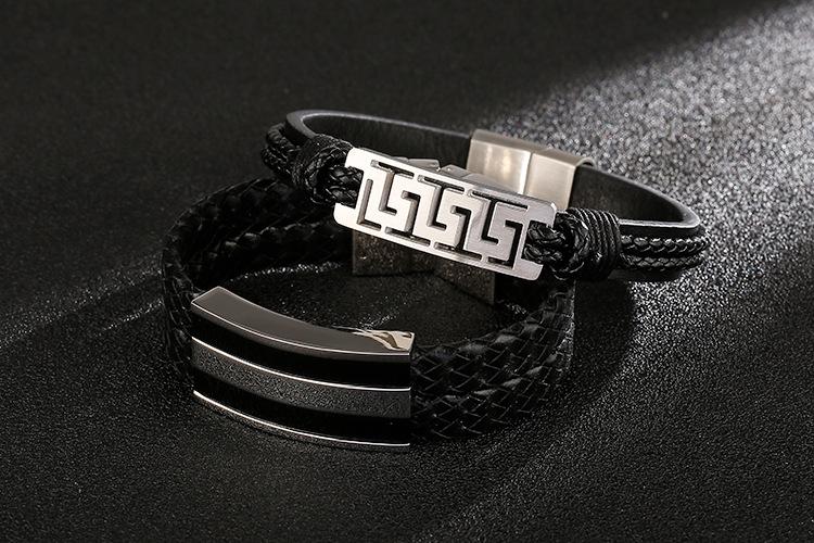 Hao Yi Nueva Moda Europea y Americana Retro Tejido a Mano Multicapa Cuero de Vaca Pulsera para Hombre Pulsera de Accesorios Anchos