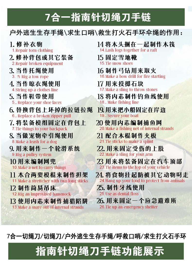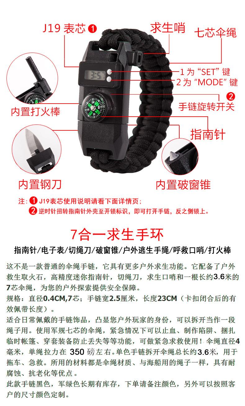 Pulsera de Paracord Pulsera Trenzada Reloj Naturaleza Aire Libre Supervivencia Emergencia Multifuncional Paracord de Siete Núcleos Pulsera Hecha a Mano