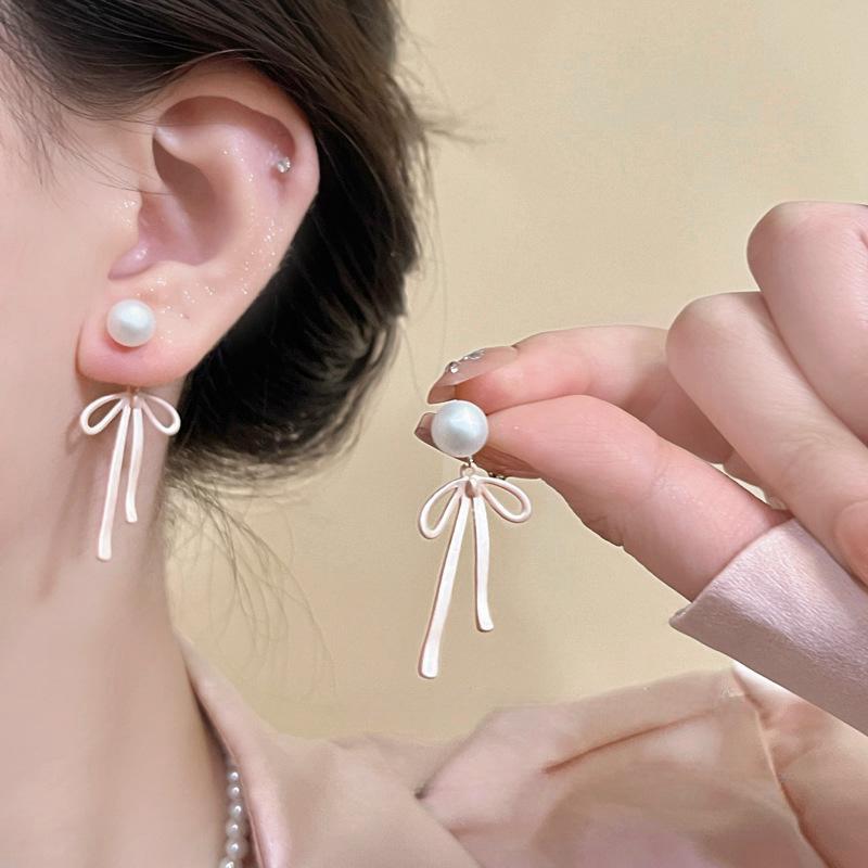 Pendientes de perlas con lazo para mujer, ligeros, lujosos, de alta gama, únicos, de estilo frío, elegantes, con personalidad exagerada.