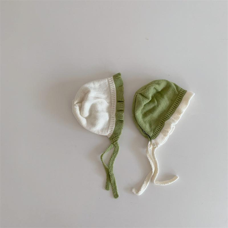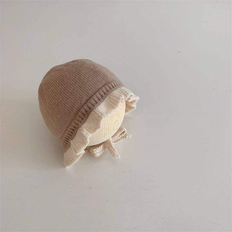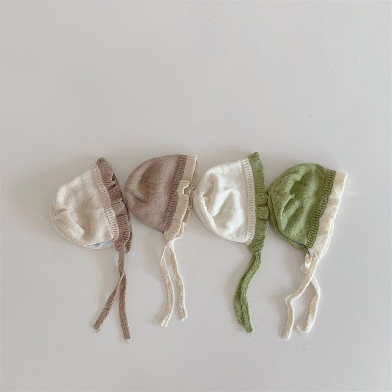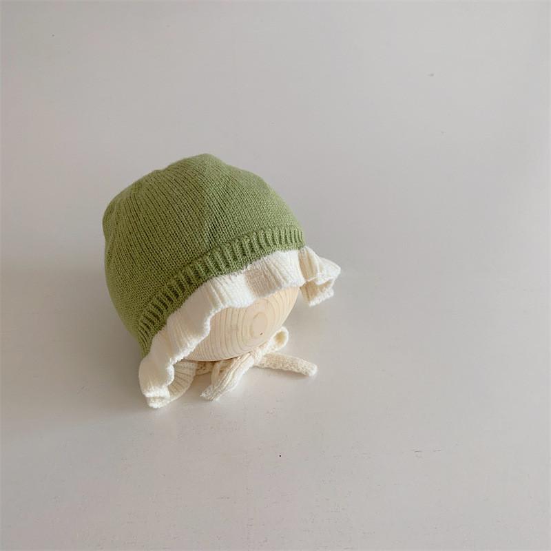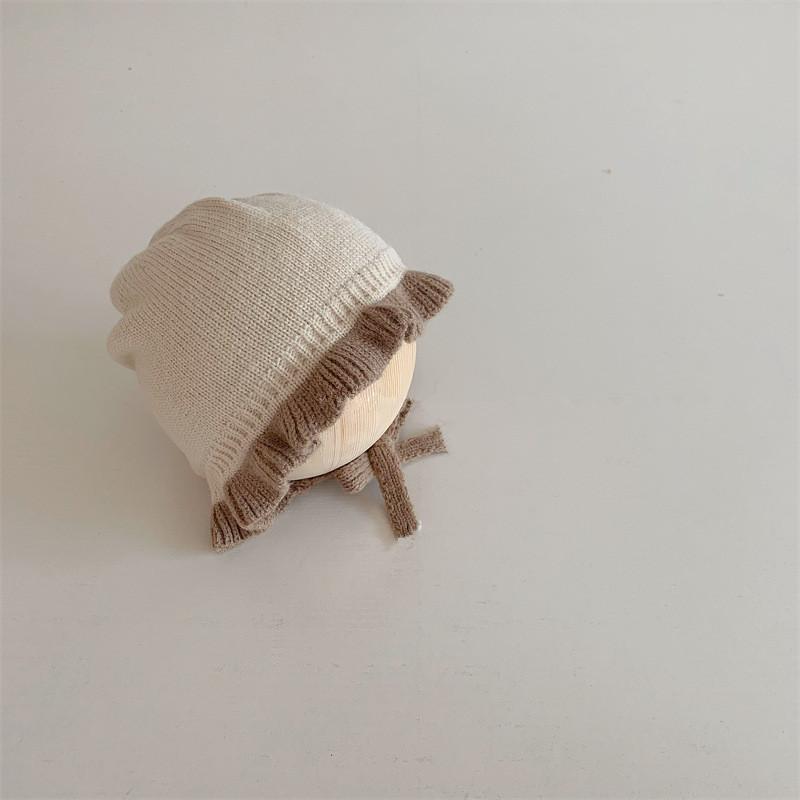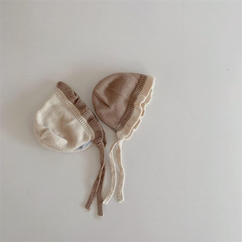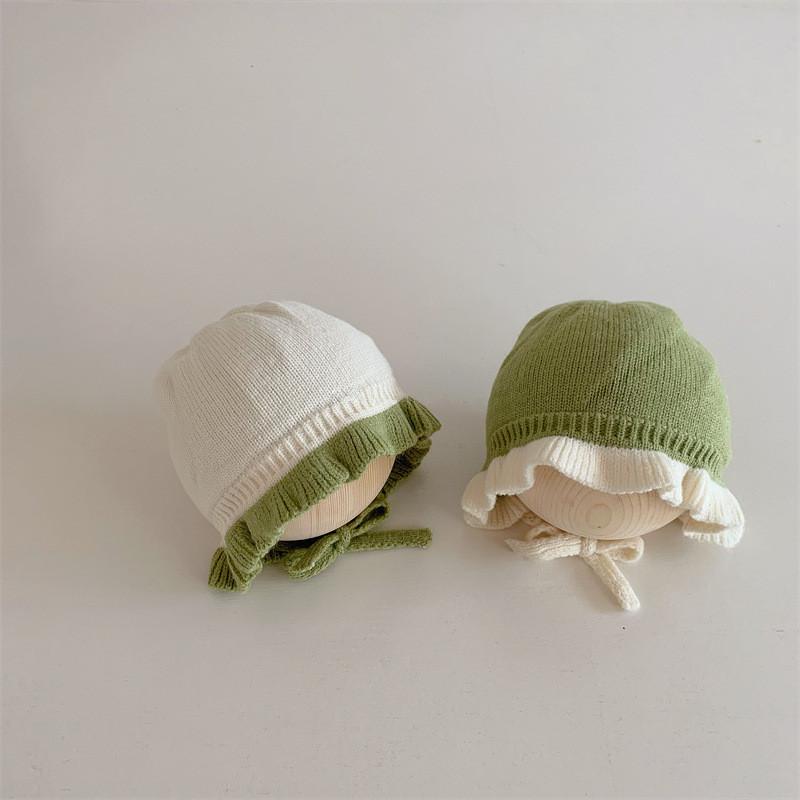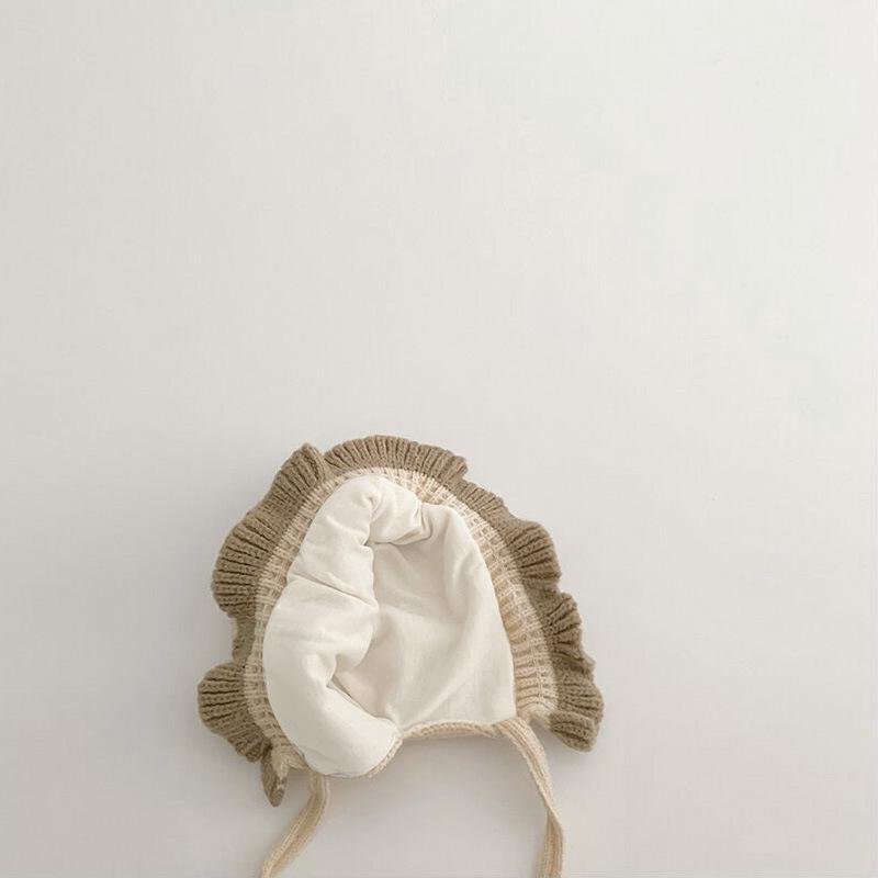 Gorro de bebé One Pan, otoño e invierno, gorro de lana para bebé con protección para las orejas de punto cálido y con volantes a juego de colores coreanos para niñas