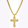 Collar de acero de titanio europeo y americano con colgante de cruz de diamantes de estilo retro, estilo neutro, collar de cruz de hip hop simple con diamantes brillantes.