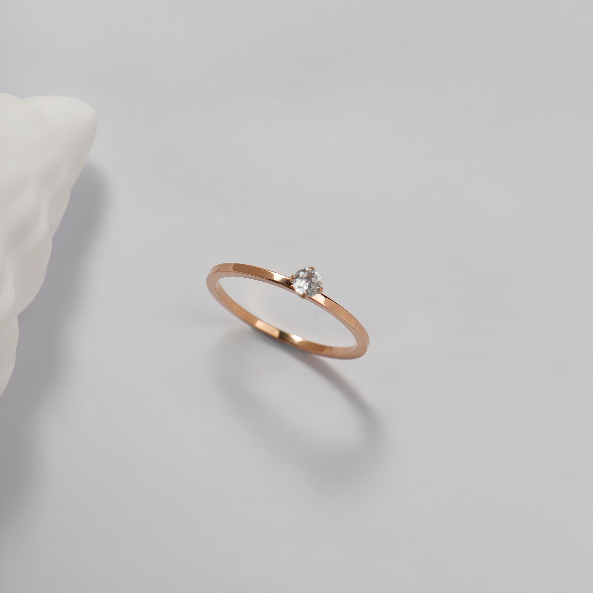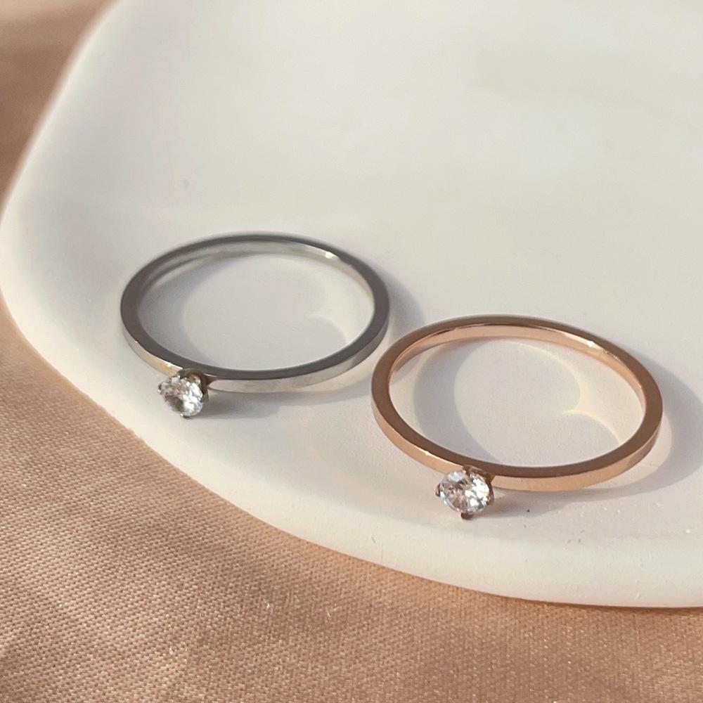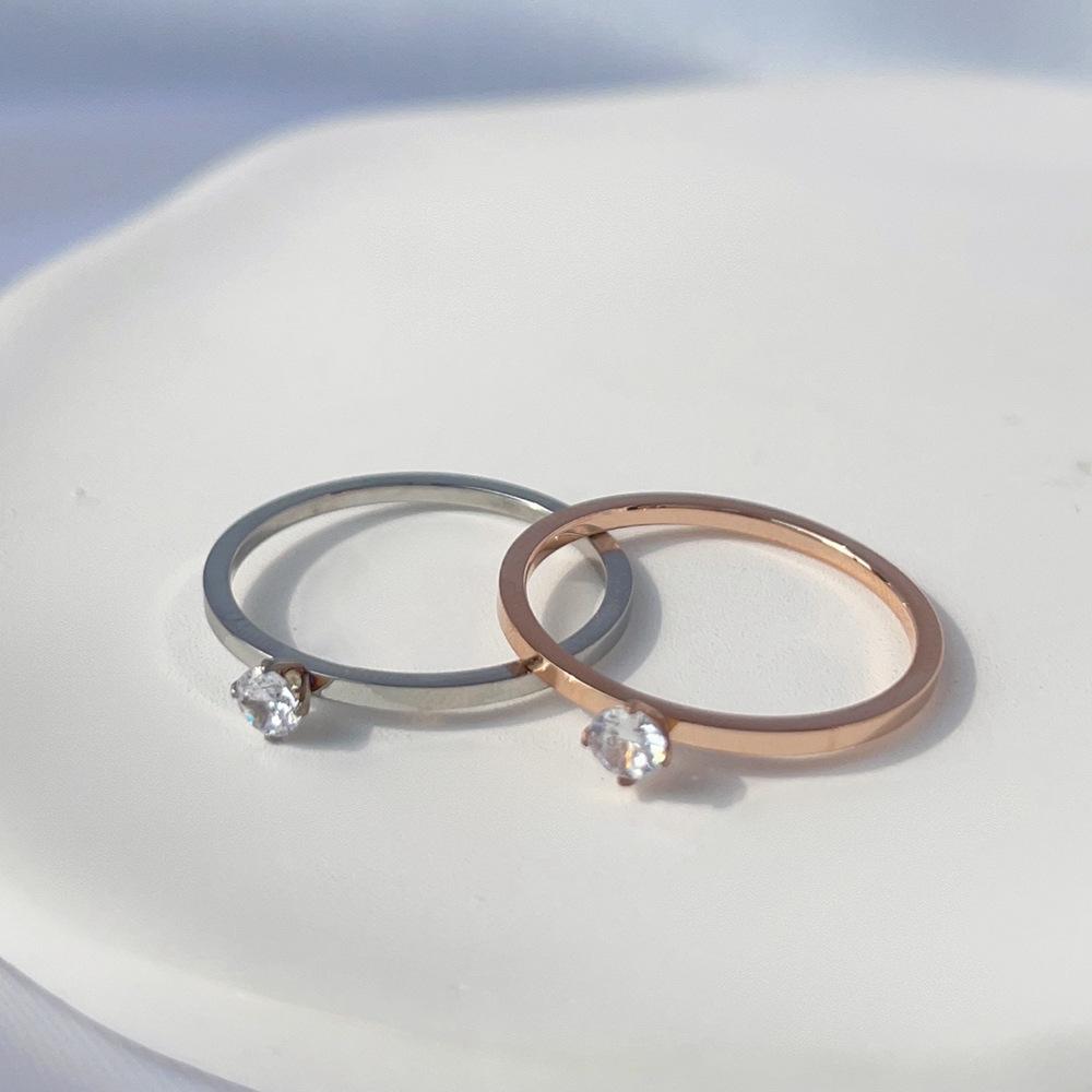 Anillo liso de circonita estilo coreano, anillo de acero de titanio oro rosa, mujeres no se decolora, directo de fábrica en stock
