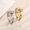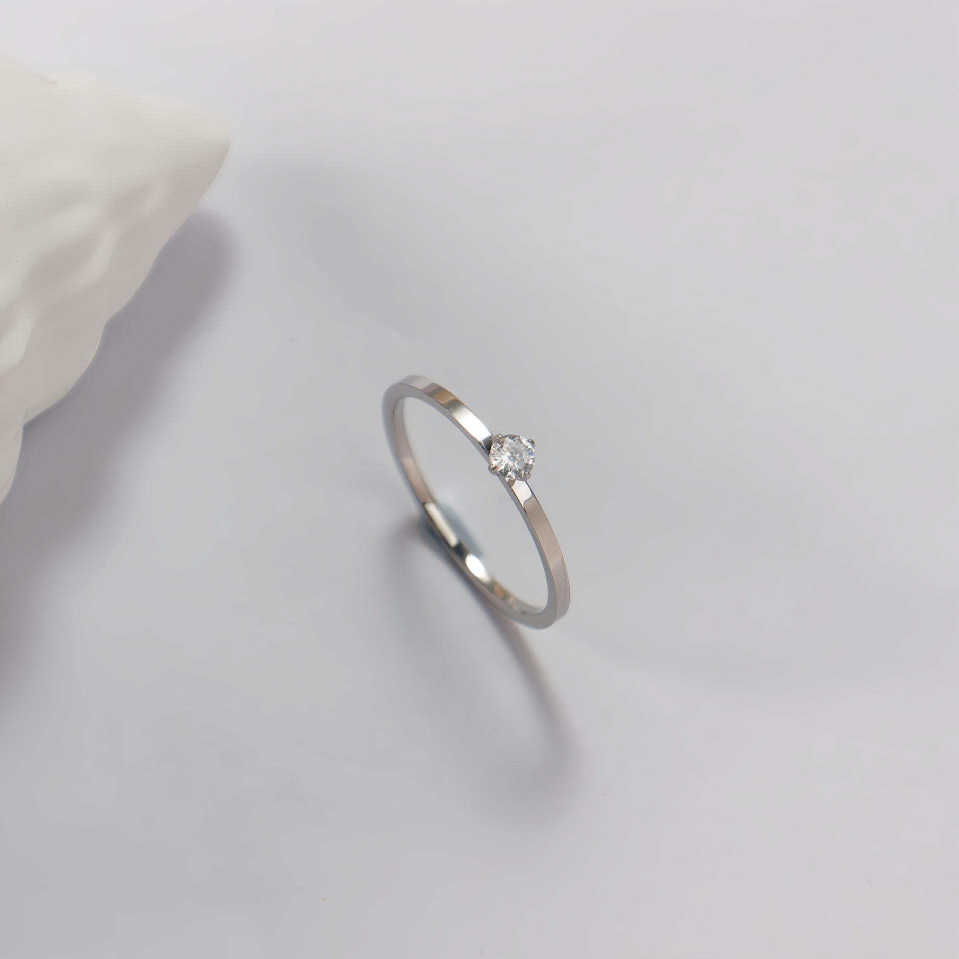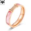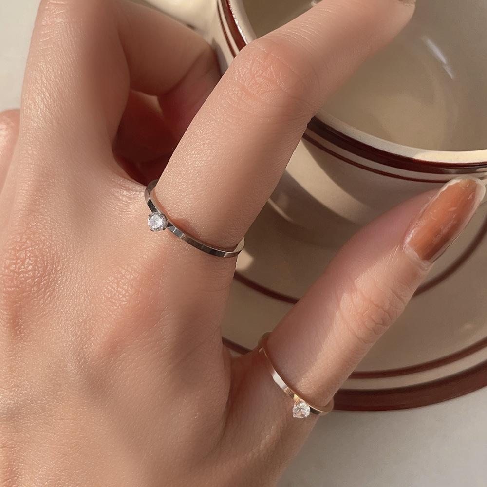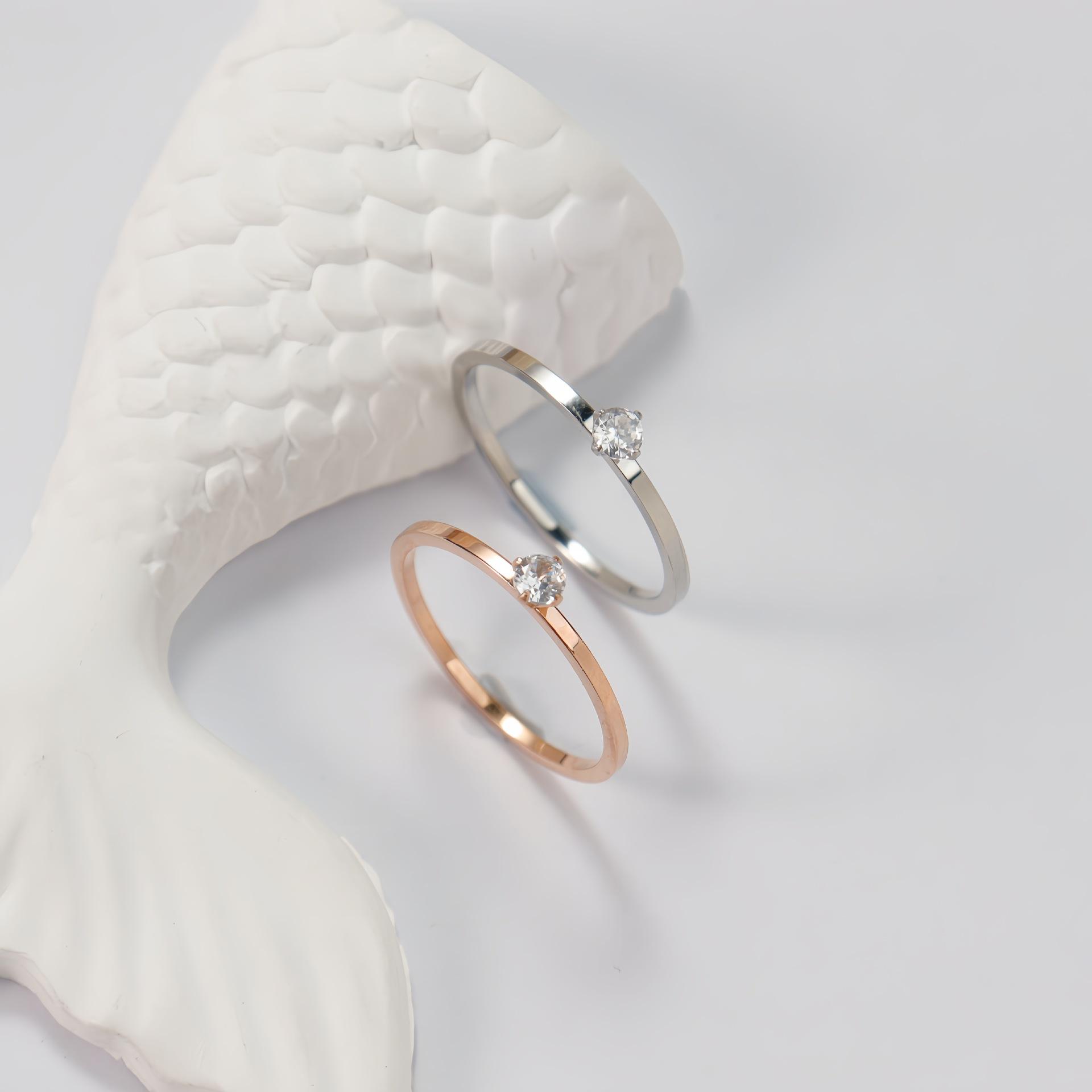 Anillo liso de circonita estilo coreano, anillo de acero de titanio oro rosa, mujeres no se decolora, directo de fábrica en stock