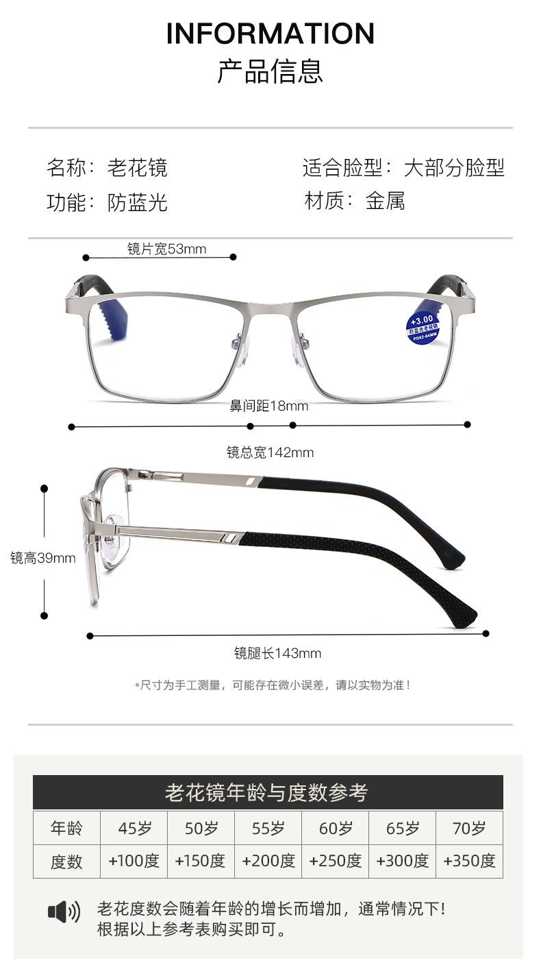 Lentes de Lectura Anti Luz Azul para Hombres de Mediana Edad y Ancianos Lentes de Lectura Terminados 100 150 200 250 300 350