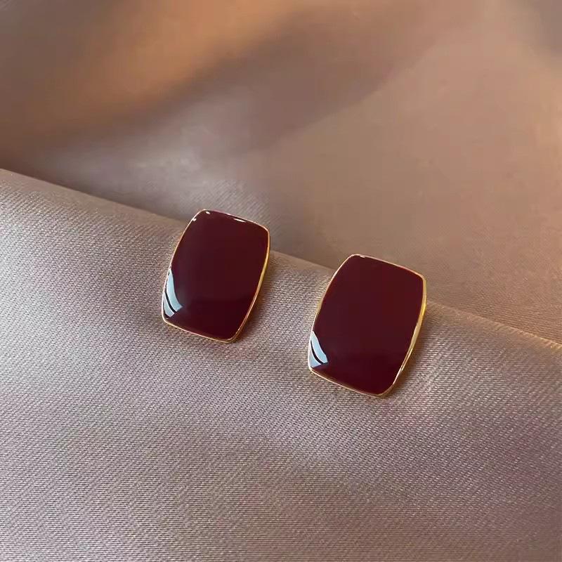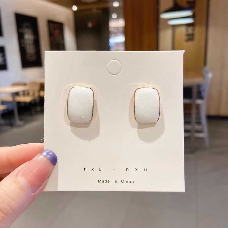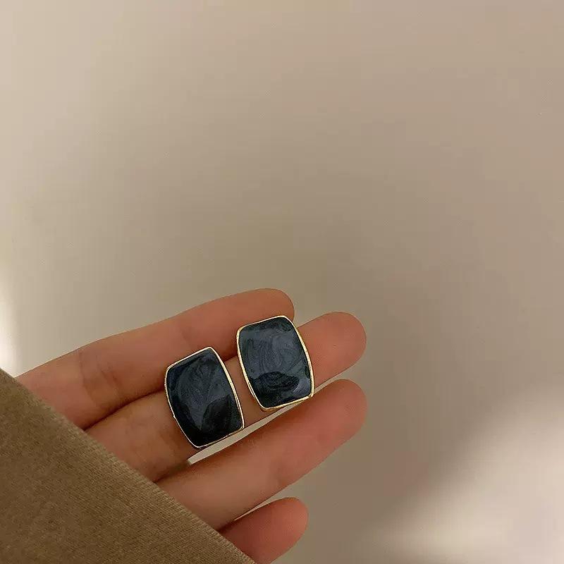 Pendientes de botón cuadrados de estilo frío y sencillo con aguja de plata S925, elegantes y de alta gama, con un diseño personalizado, joyería para las orejas.