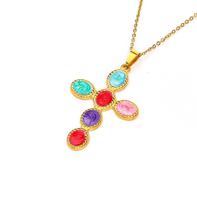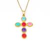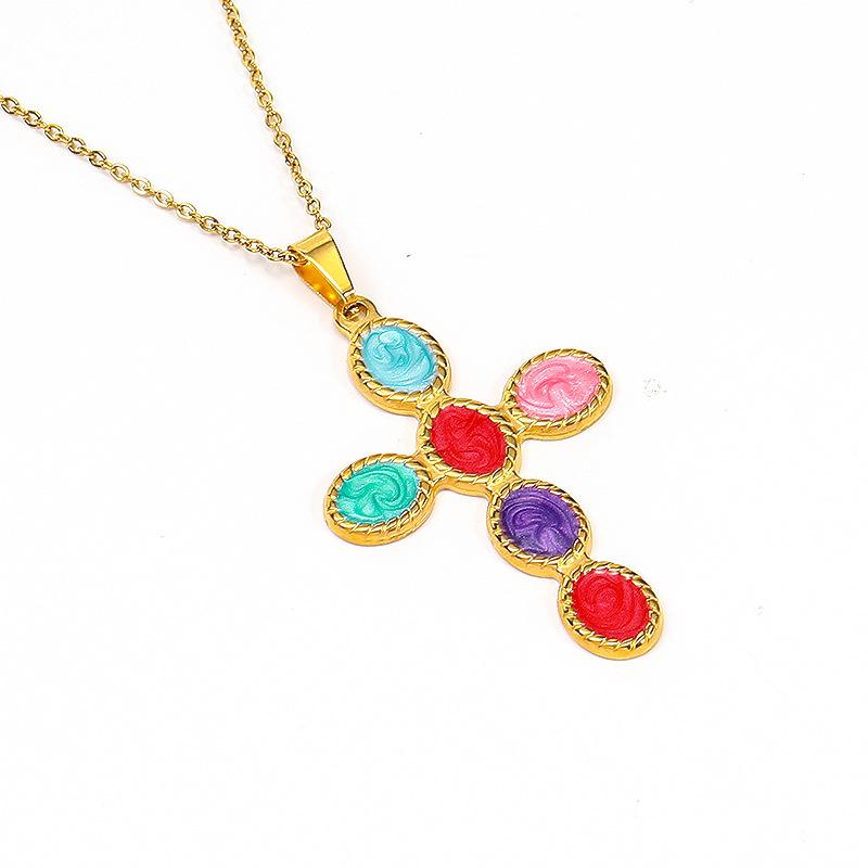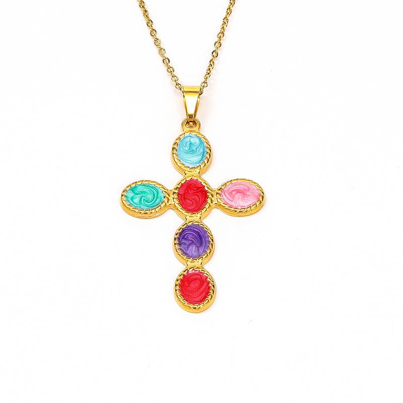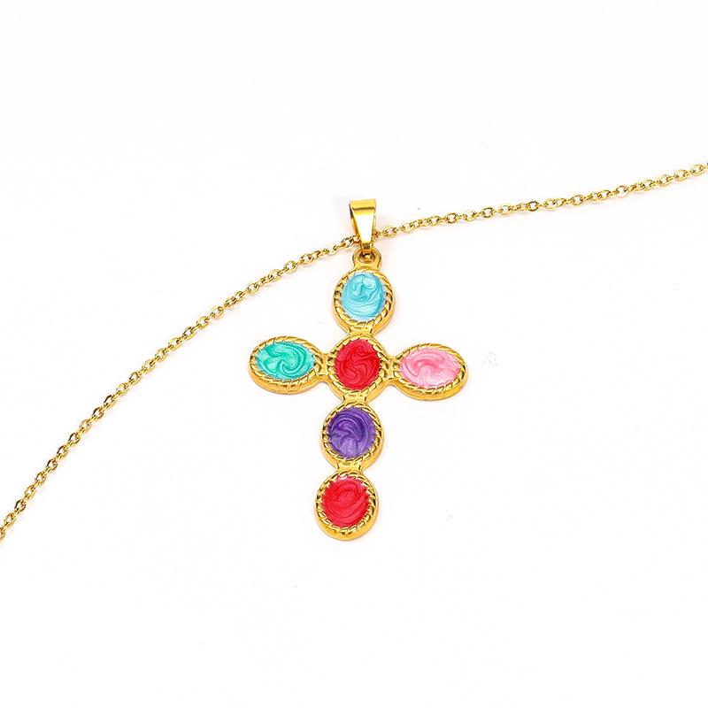 Collar europeo y americano transfronterizo de lujo ligero ins cruz color gota de aceite collar femenino diseño nicho acero titanio 18K cadena clavícula