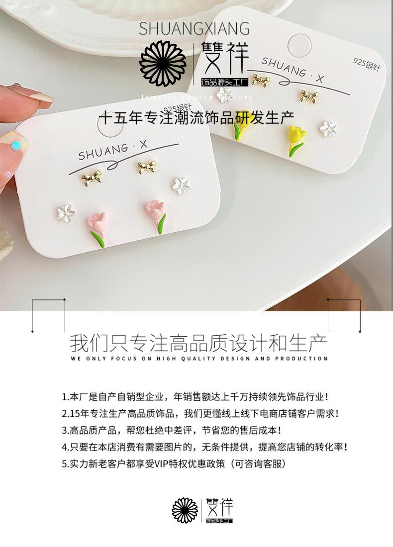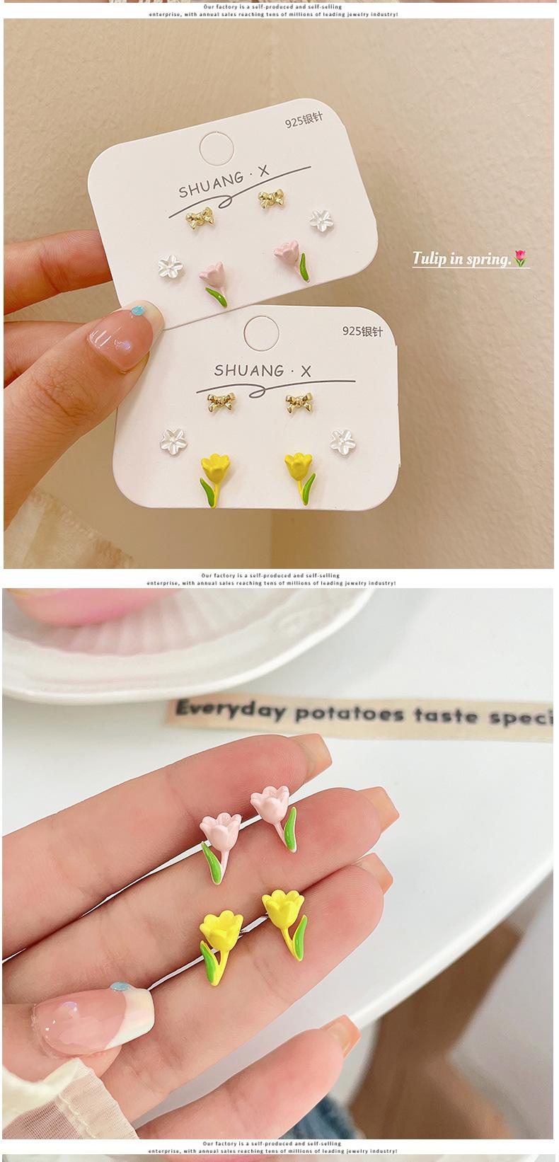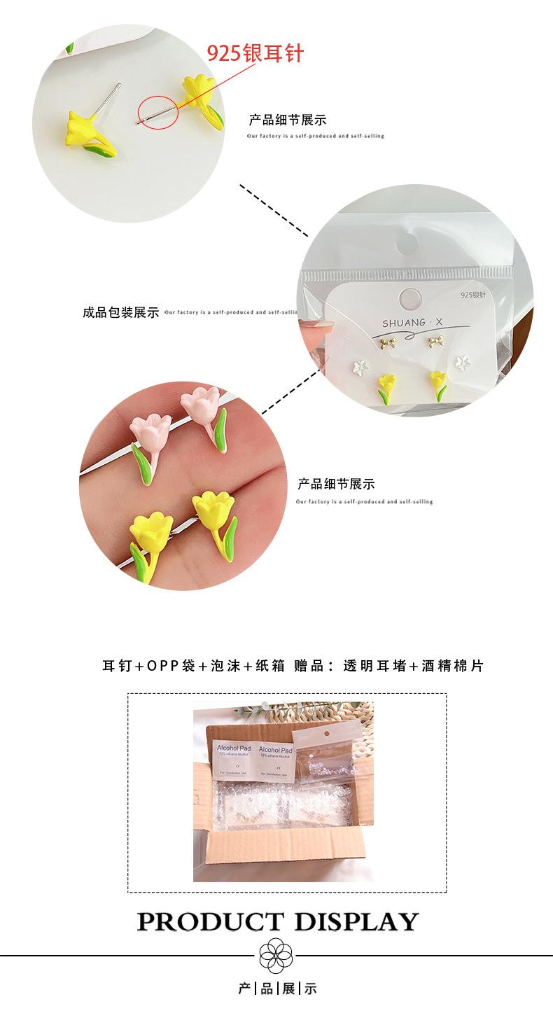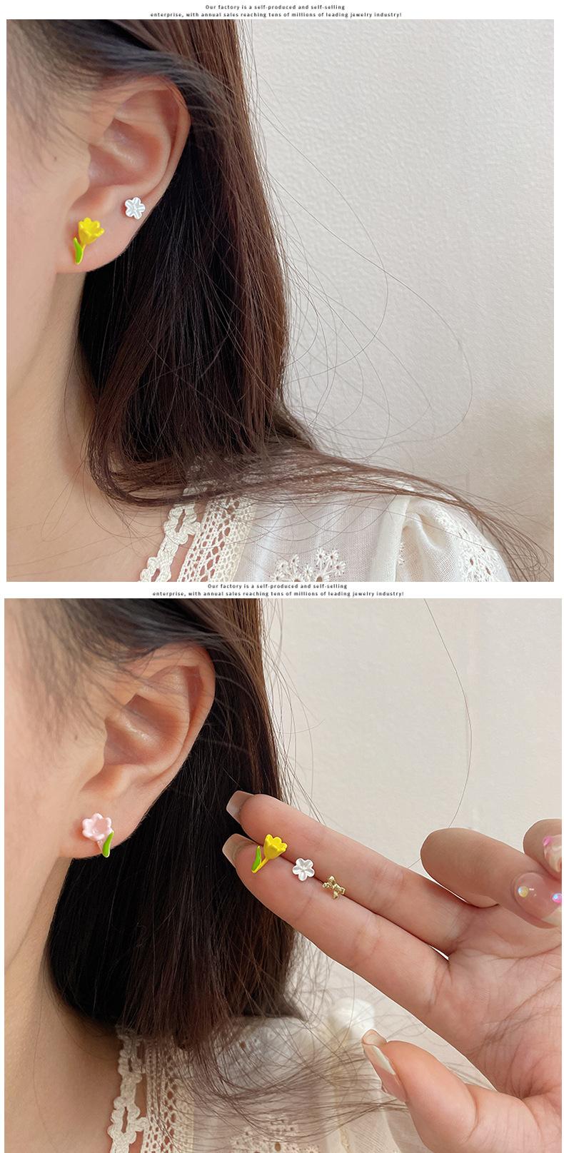 Pendientes de Tulipán Tridimensionales de Aguja de Plata de Verano Pequeños Frescos Traje Corazón de Niña Dulces Pendientes de Flores Aison