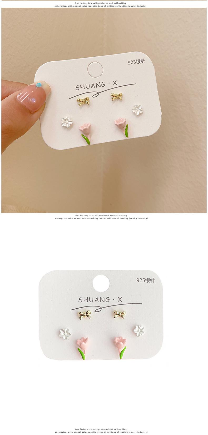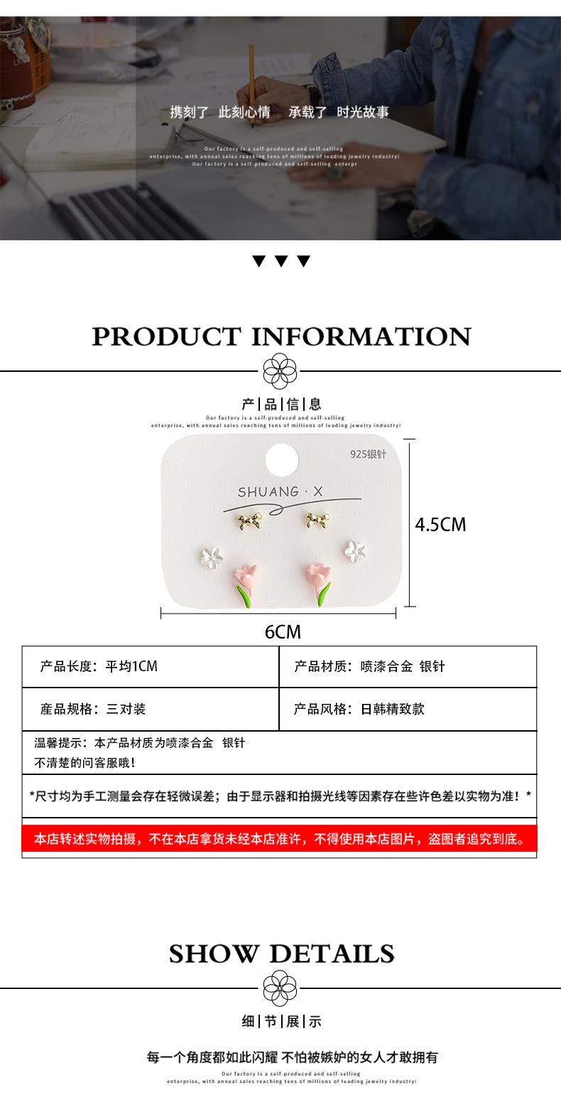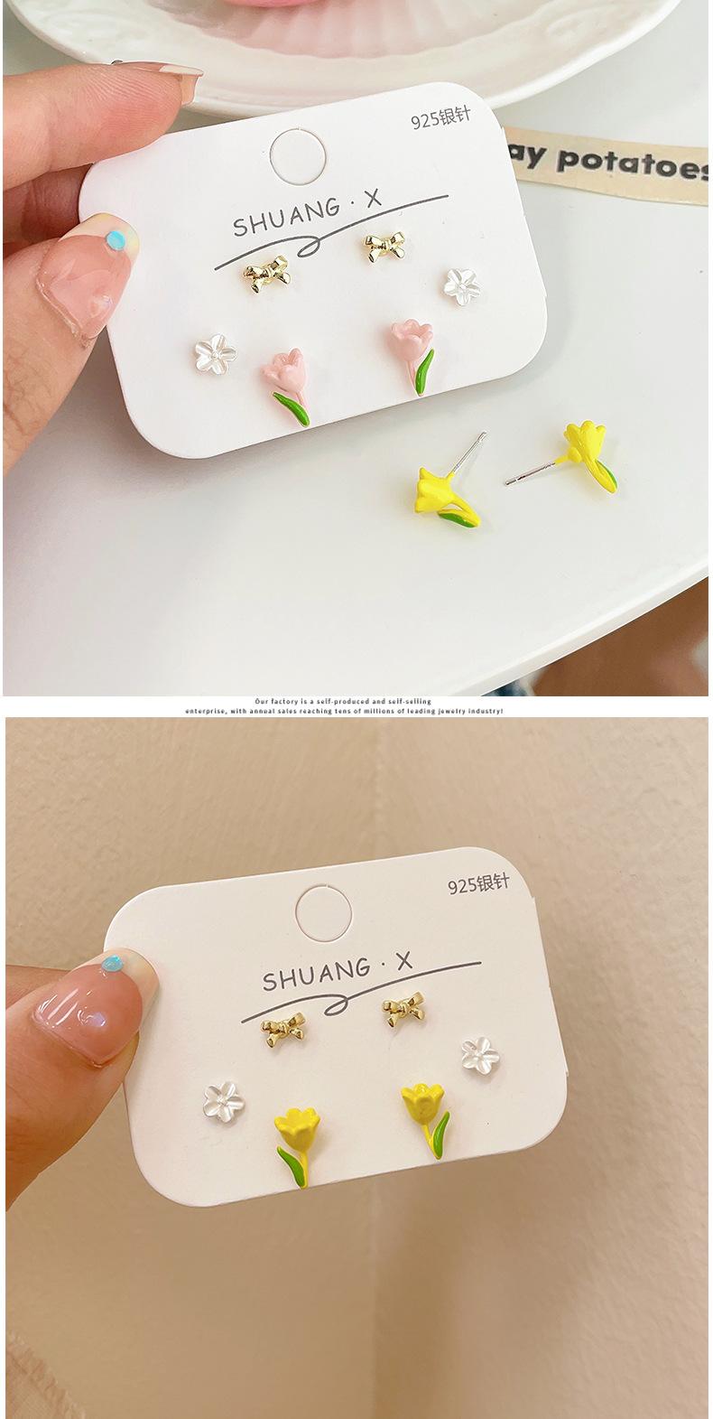 Pendientes de Tulipán Tridimensionales de Aguja de Plata de Verano Pequeños Frescos Traje Corazón de Niña Dulces Pendientes de Flores Aison