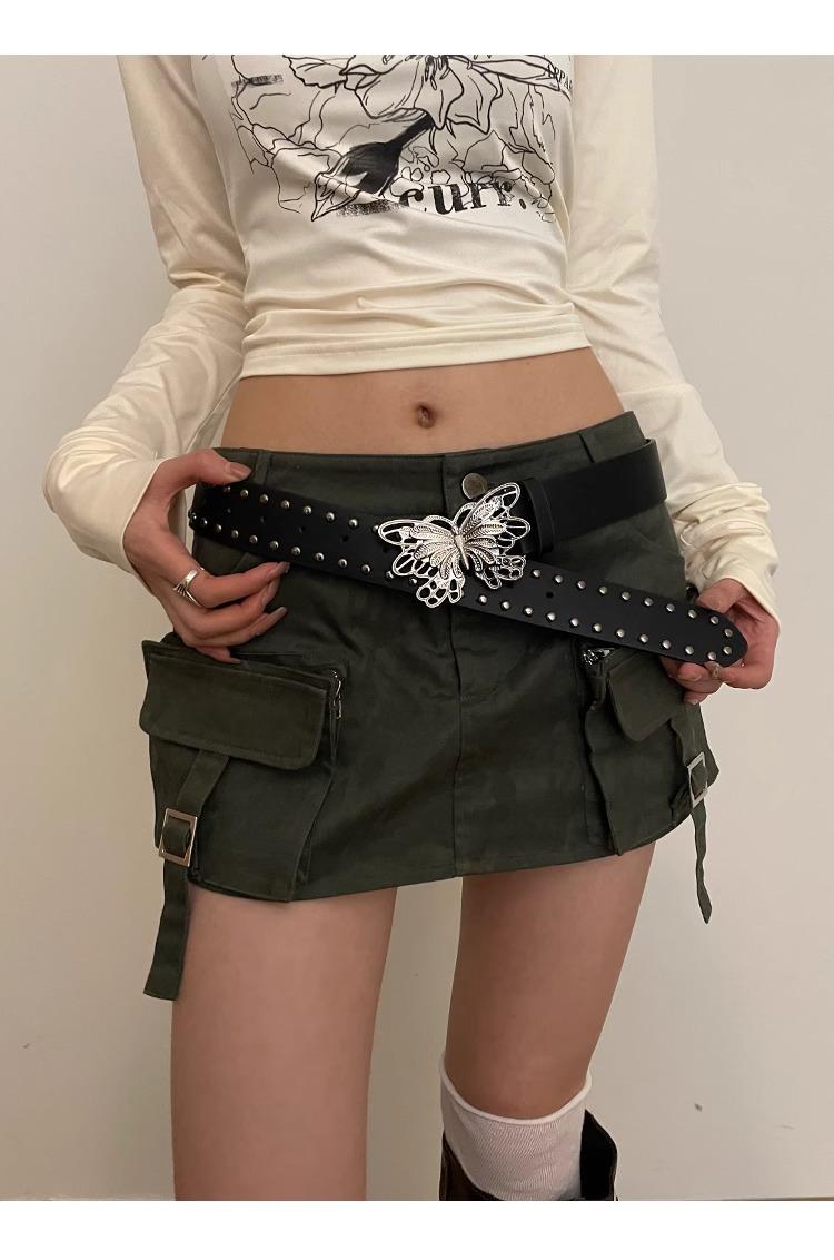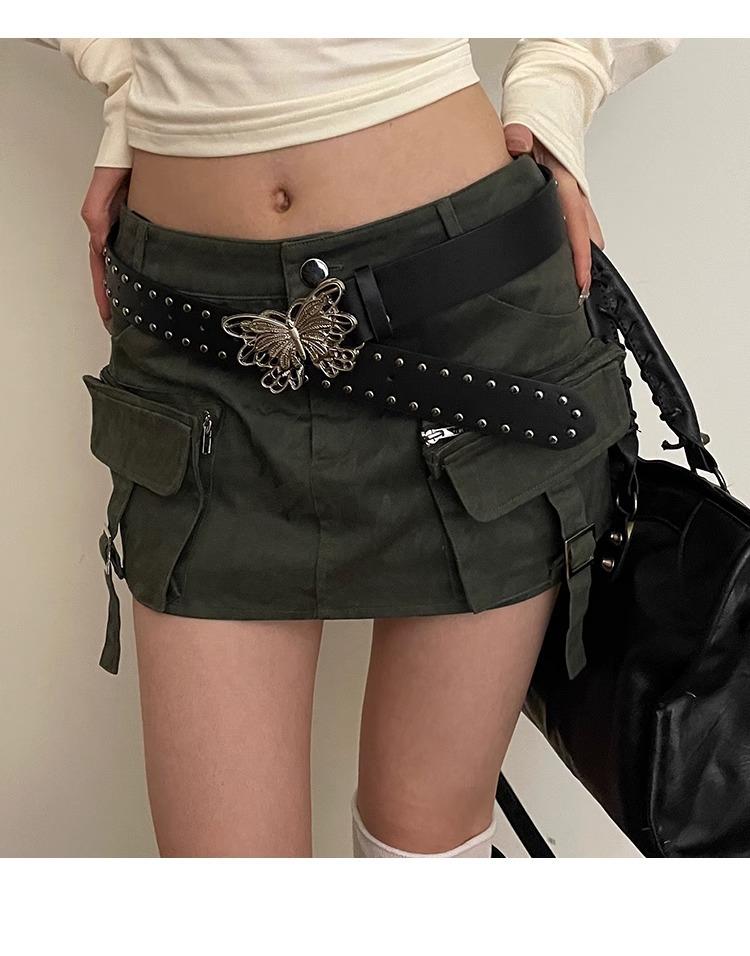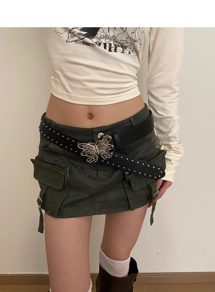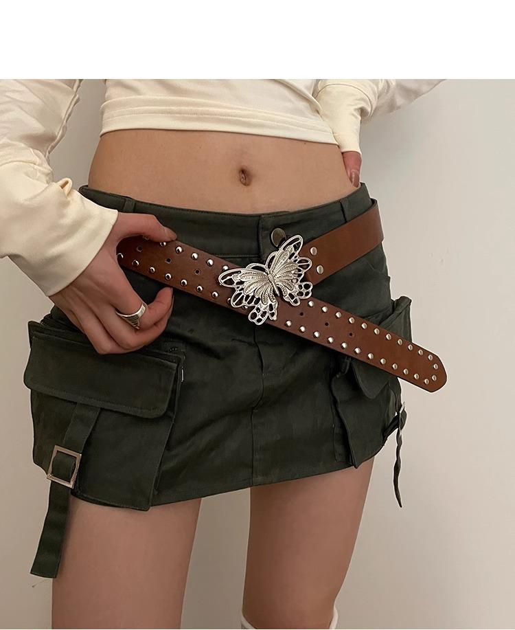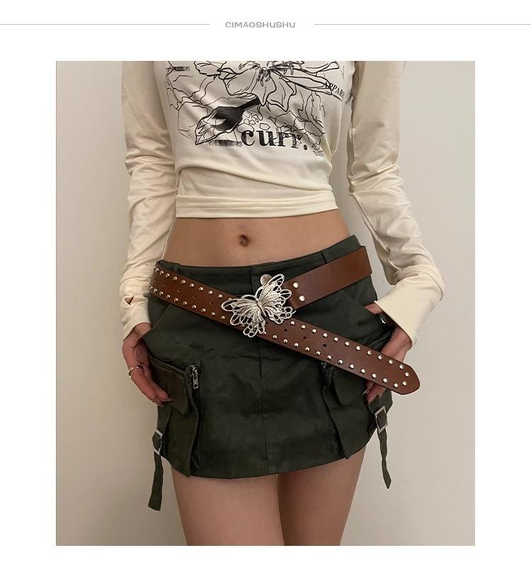 Cinturón para Mujer con Decoración de Lazo Calado Estilo Punk de Industria Pesada Simple y Versátil Cinturón de Diseño Nicho Nuevo 2025