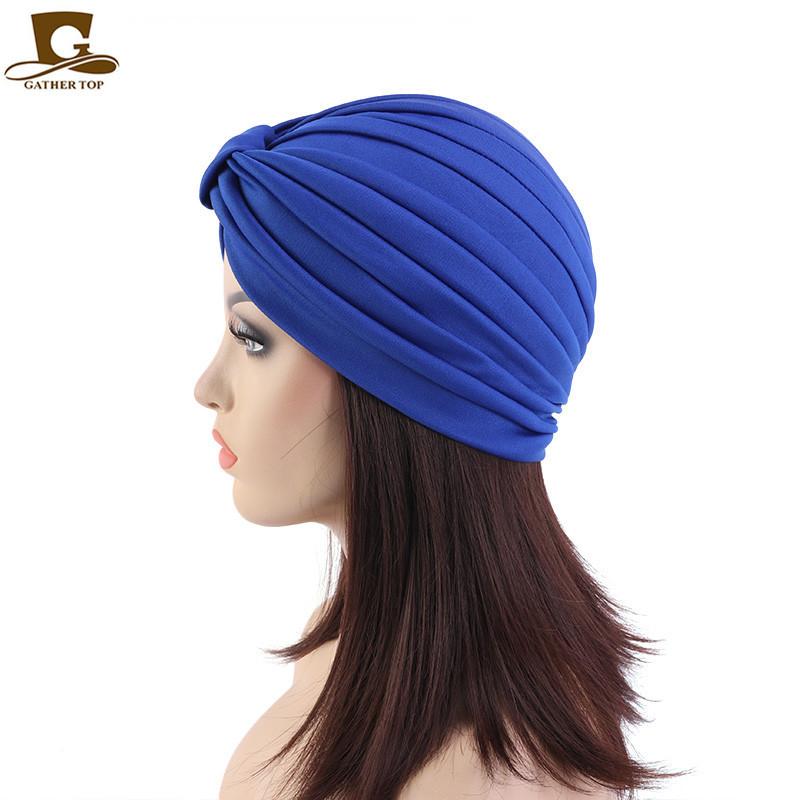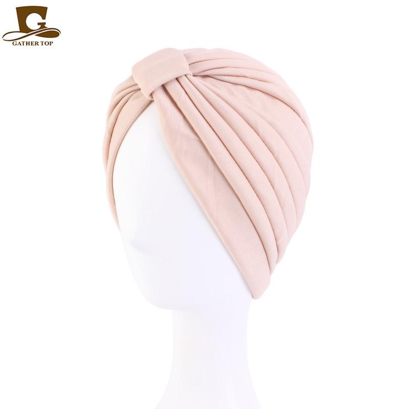 Sombrero Turbante de Moda para Mujer Tejido Grueso Acanalado Sombrero Indio Aleación Colgante Accesorios Sombrero TJM-30B Jersey