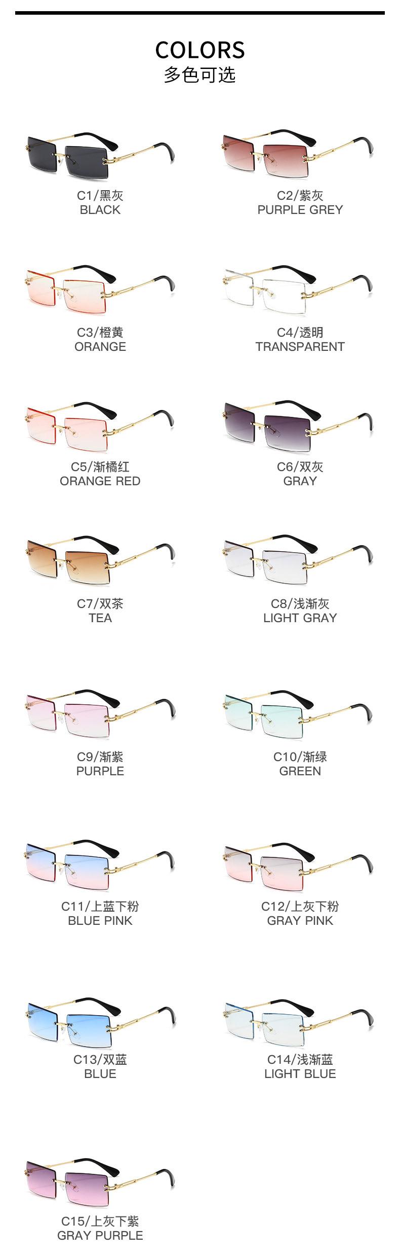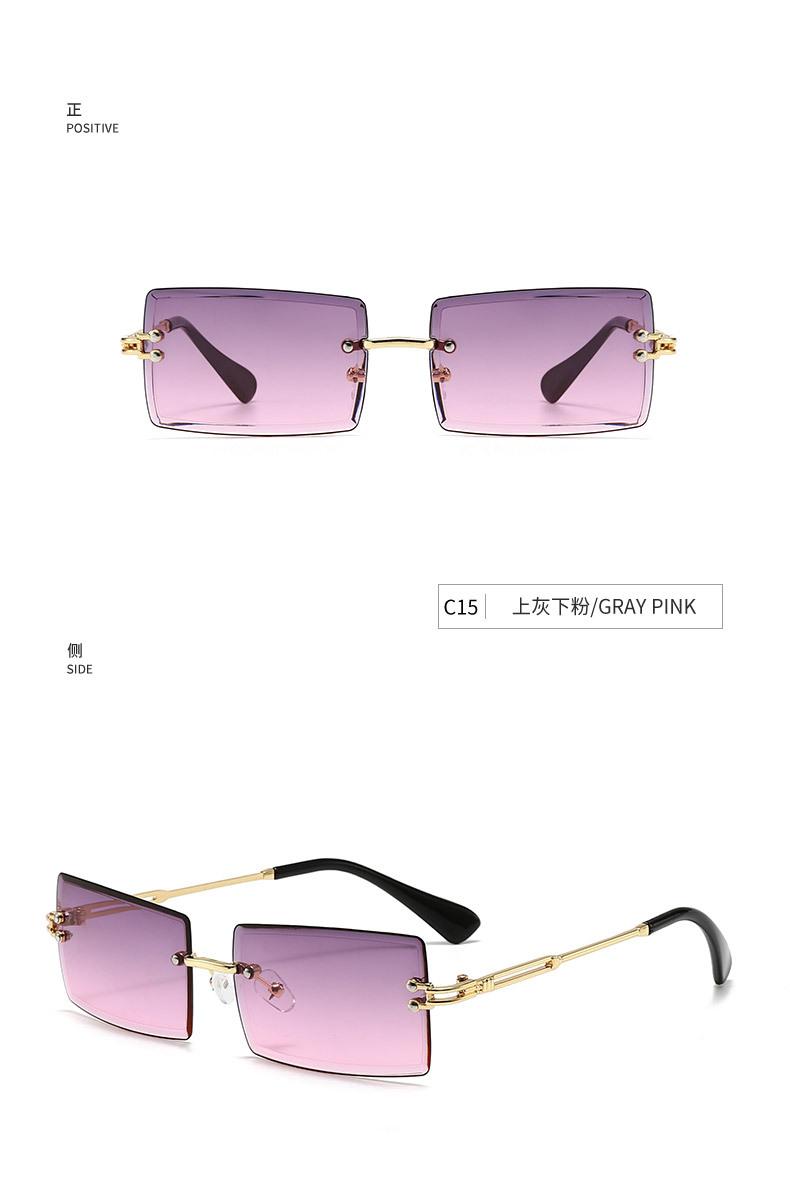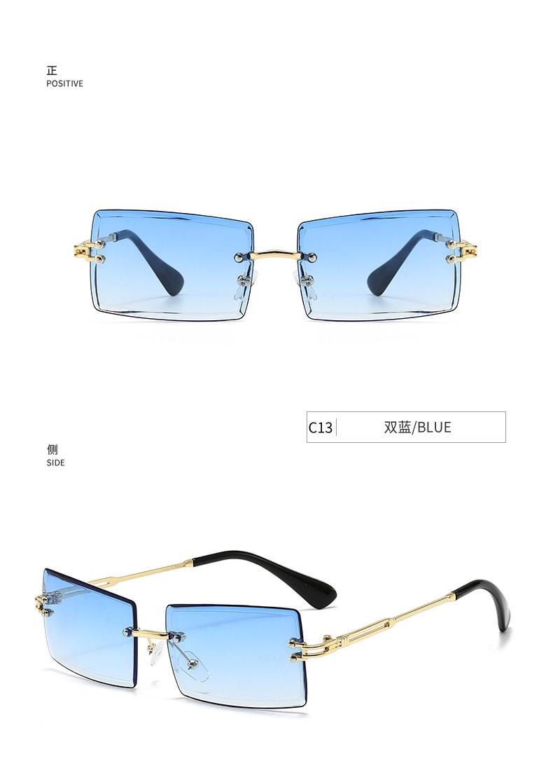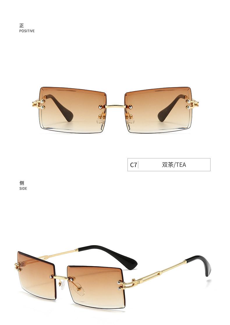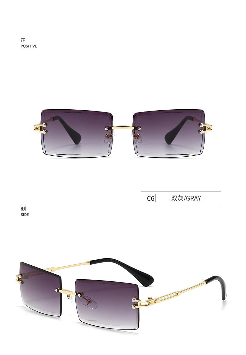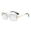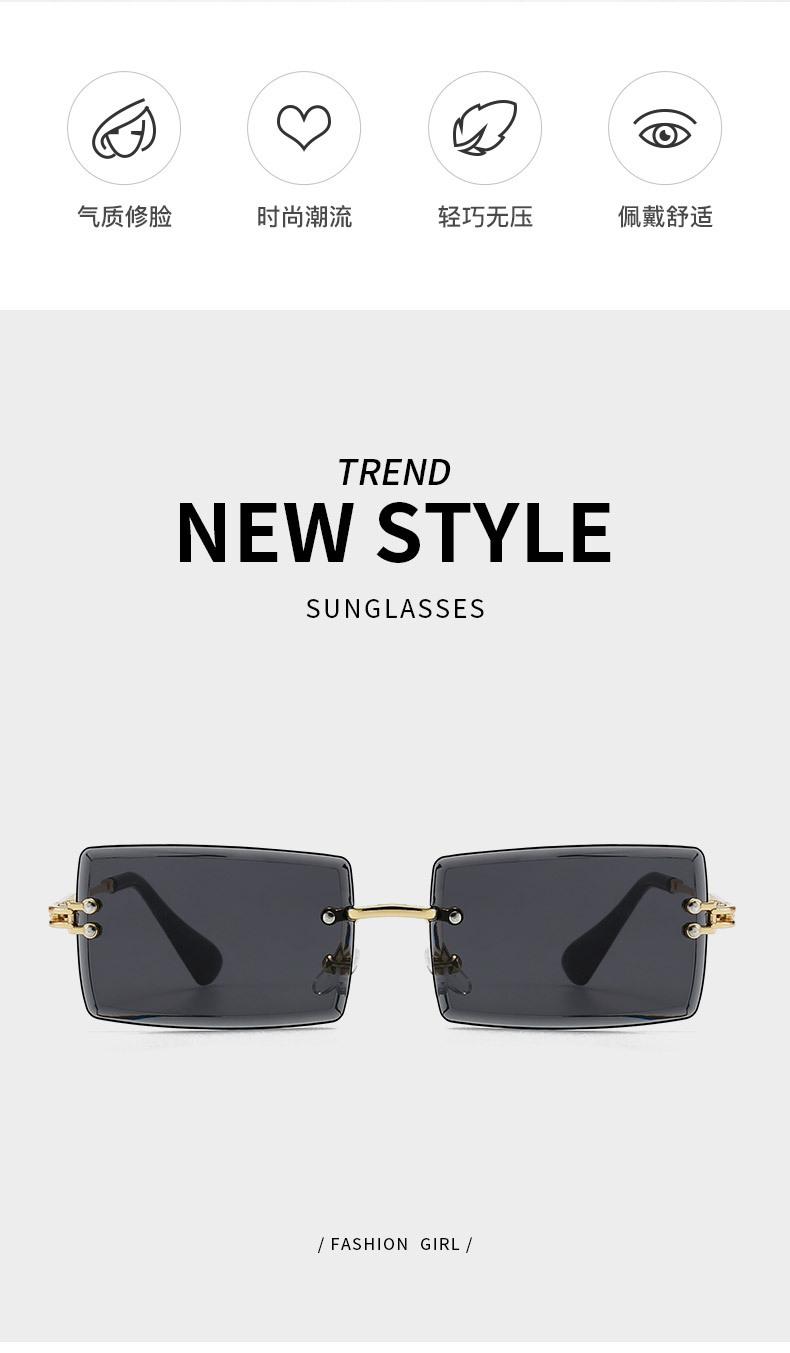 Nuevos Lentes de Sol de Moda para Mujer Lentes de Sol Transfronterizos Modernos Europeos y Americanos Cuadrados de Corte al Borde Sin Montura Anti-UV