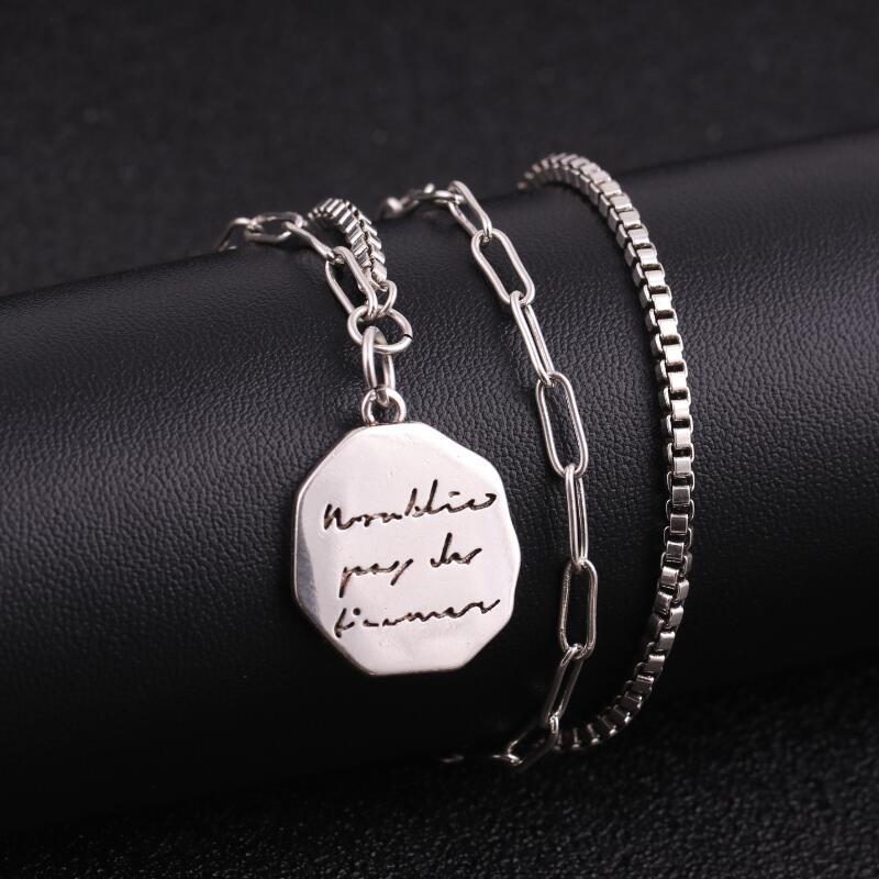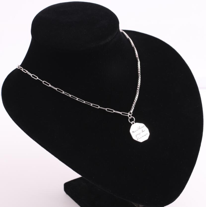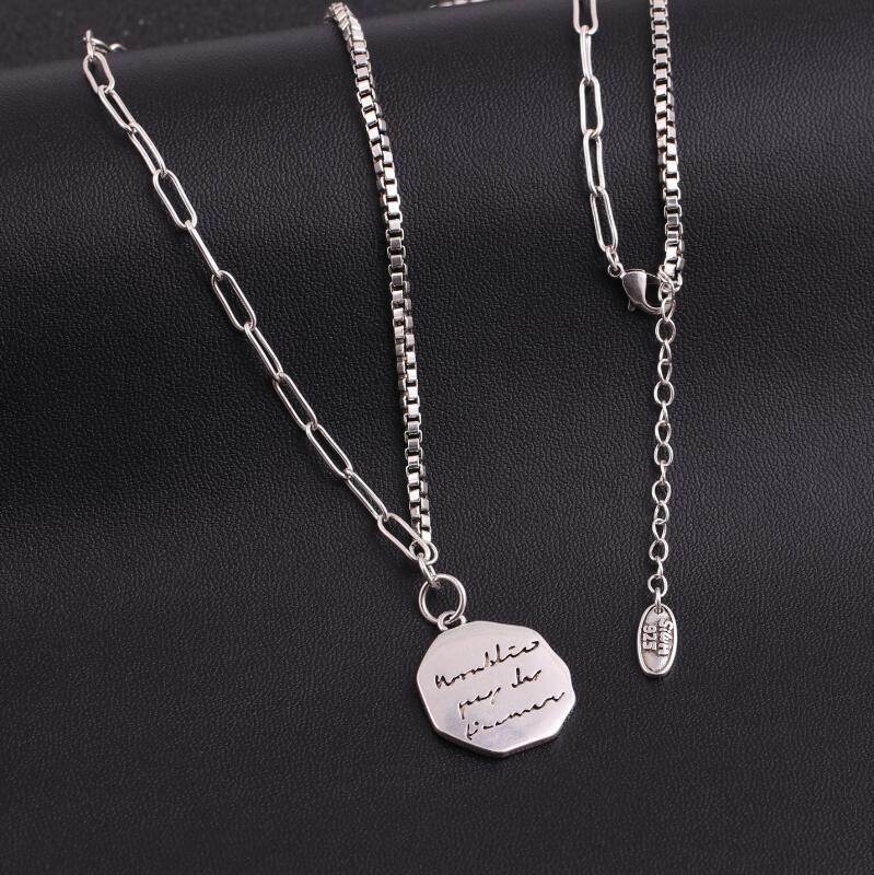 Collar de marca Dongdaemun con letras retro irregulares y redondas, cadena de clavícula asimétrica de estilo hip hop, venta al por mayor de fábrica