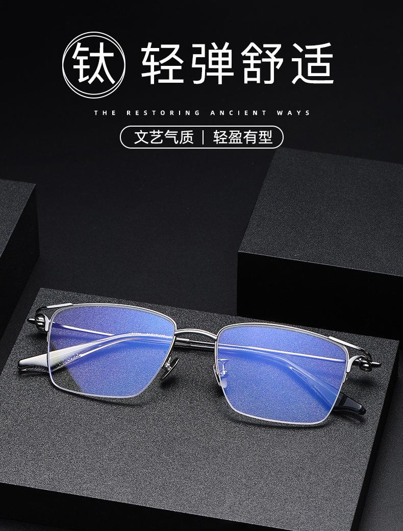 Montura de gafas de negocios de media montura Kawasaki con 81002 explosiones de comercio electrónico cara grande con miopía montura de gafas de titanio puro hombres