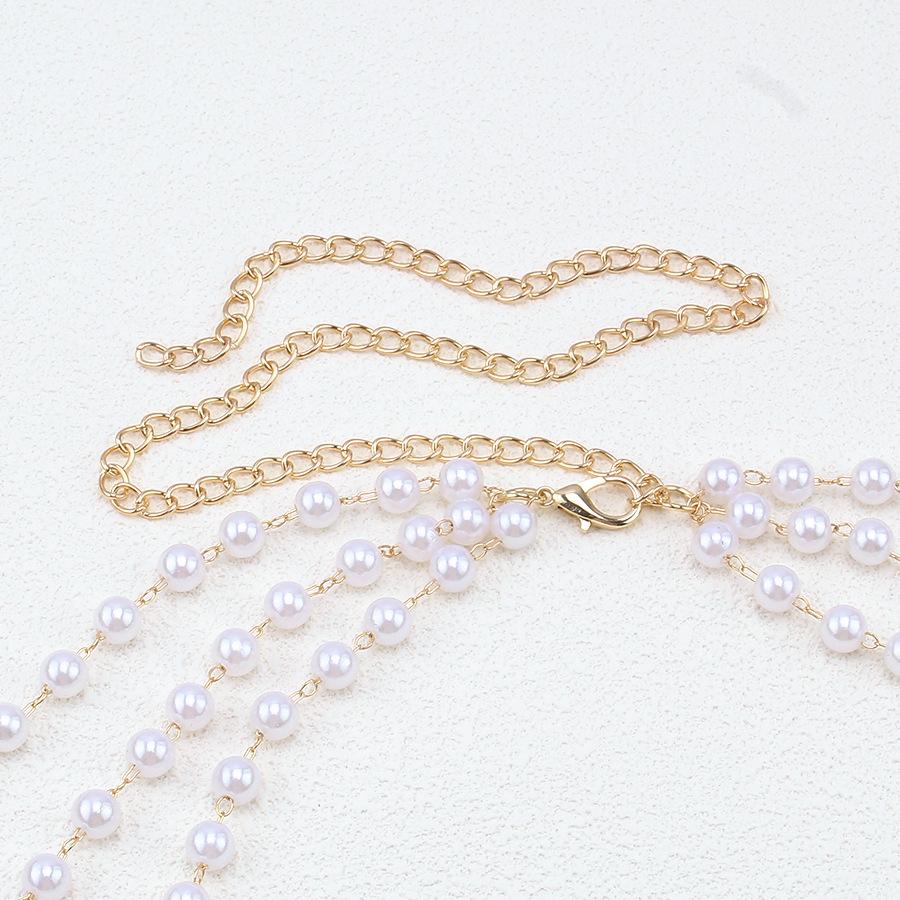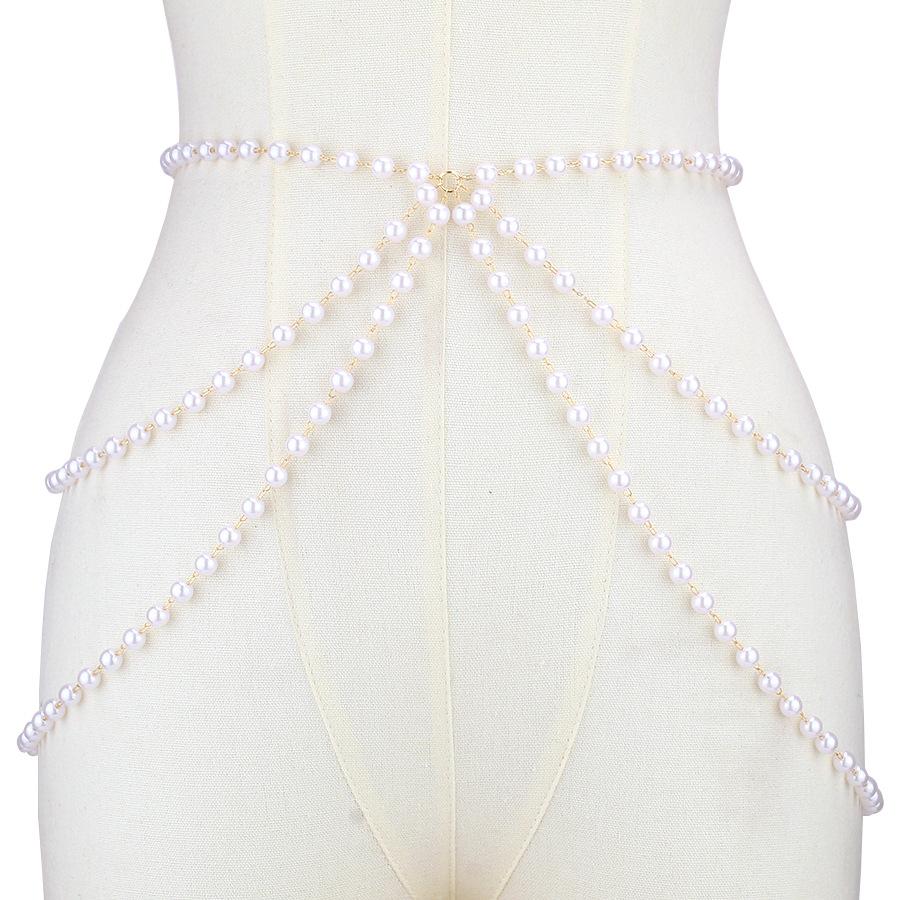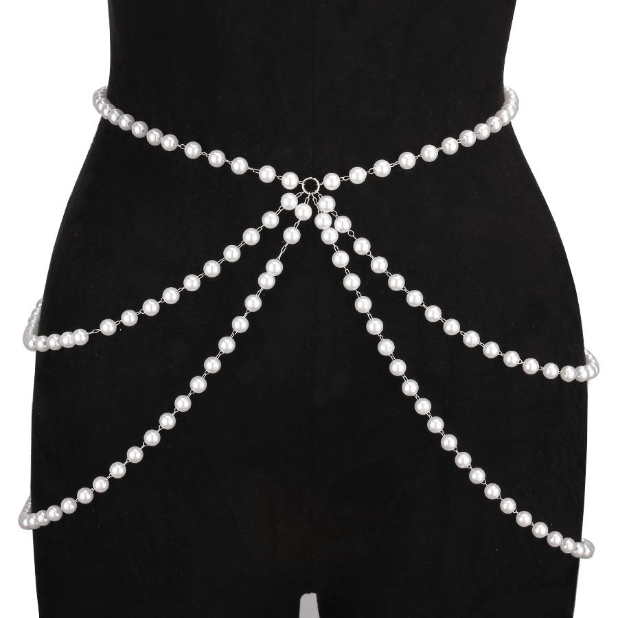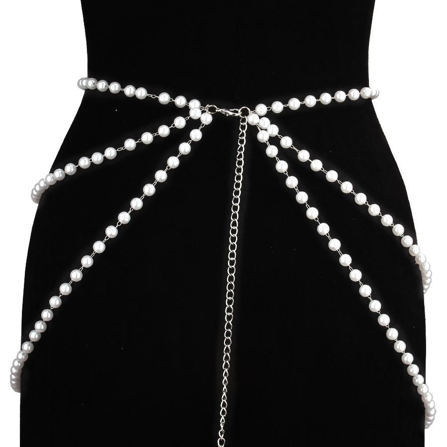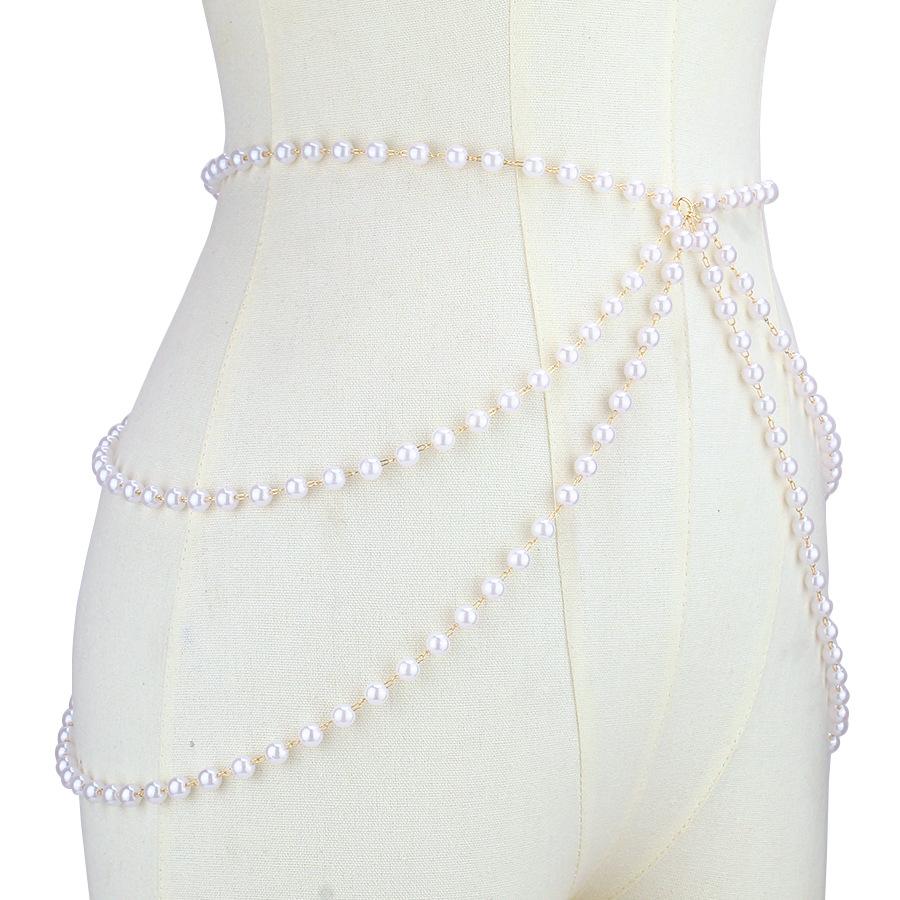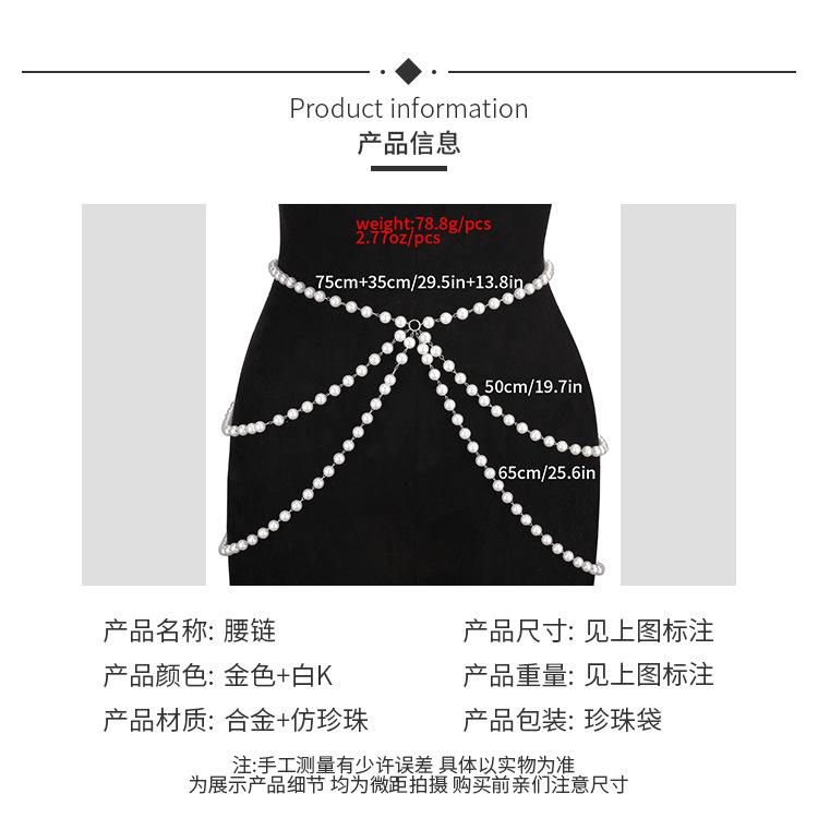 Gold imitation pearl multi-layer waist chain, White K imitation pearl multi-layer waist chain