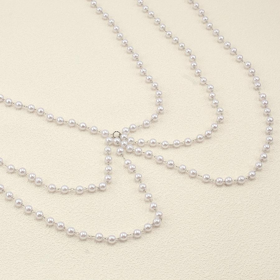 Joyería Transfronteriza Europea y Americana Estilo Vacacional Ins Perla Imitación Cadena de Cintura Multicapa Cadena de Moda Borla Cadena para el Cuerpo