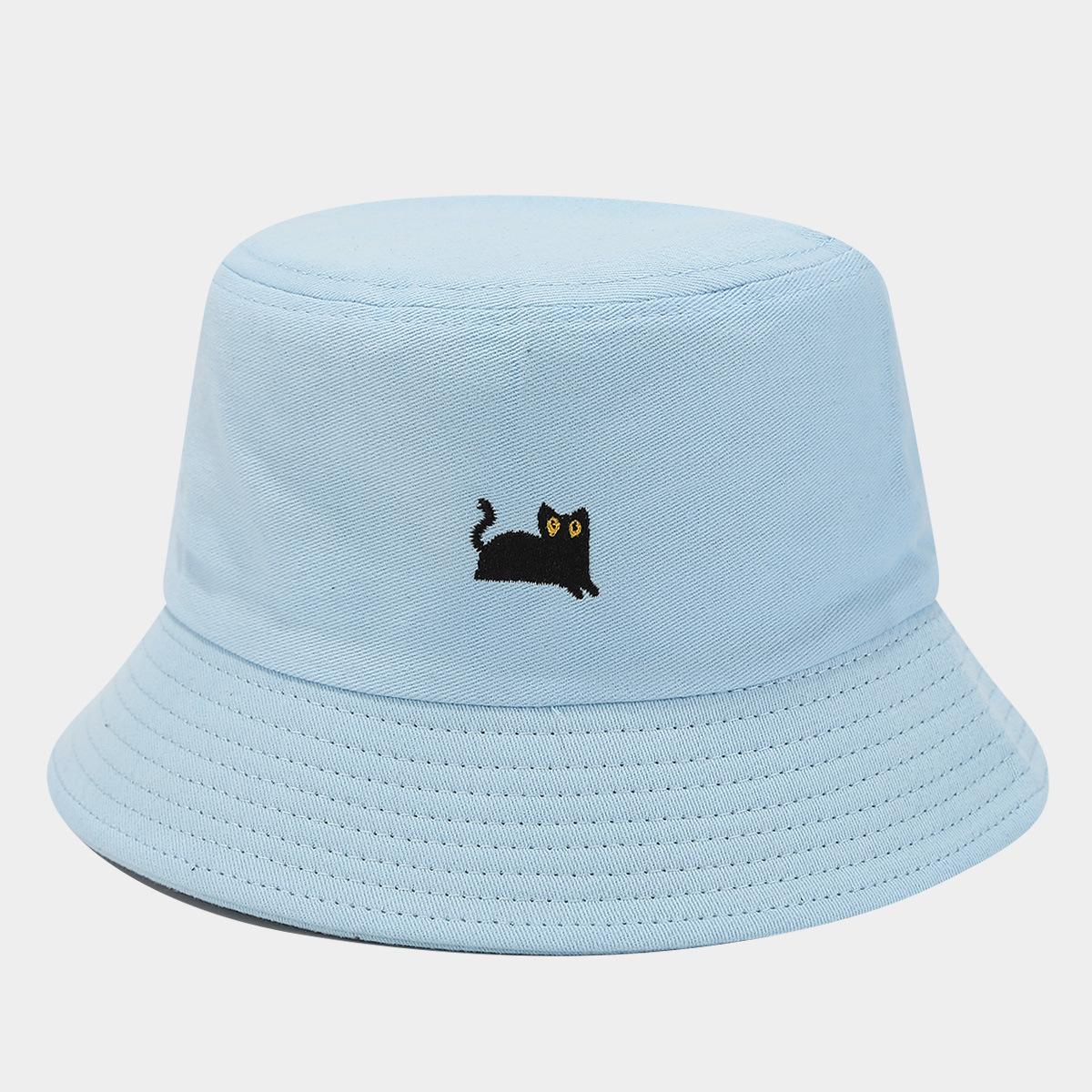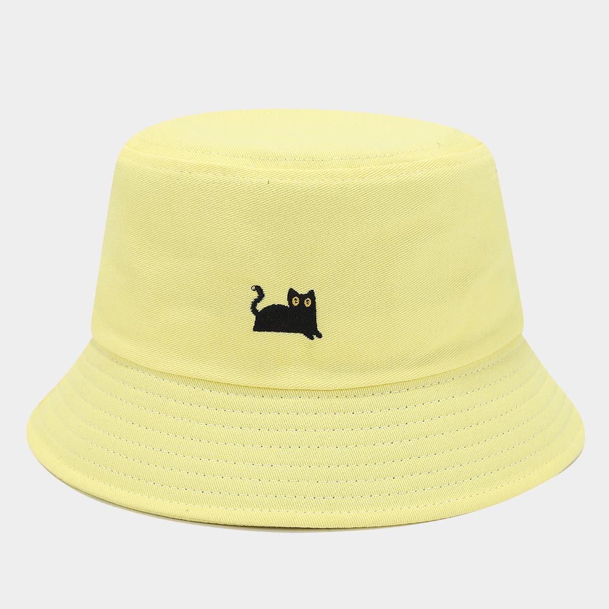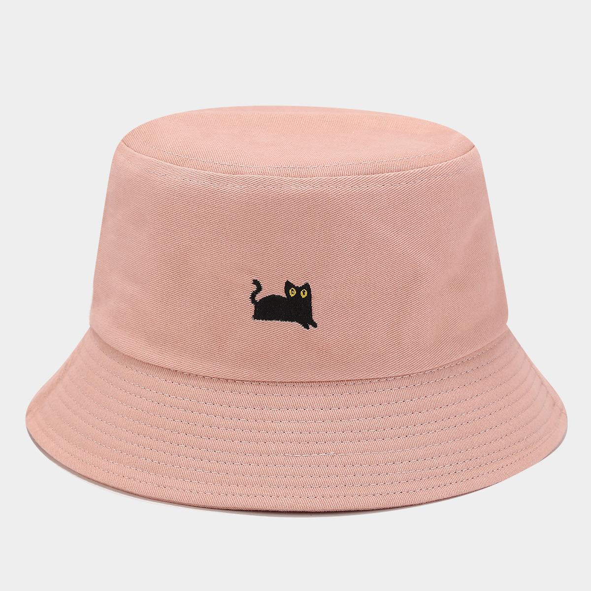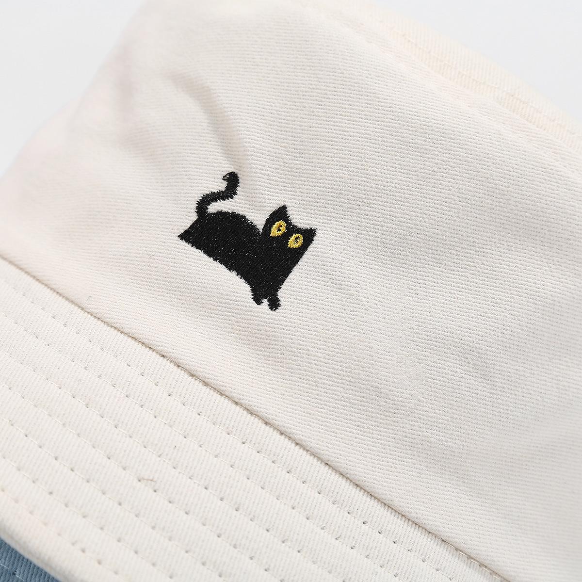 Sombrero de Pescador Bordado de Gato Negro Pequeño Fresco Lindo Verano Color Macarrón Moda Transpirable Sombrero de Olla Sombrero de Pareja de Estudiante