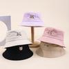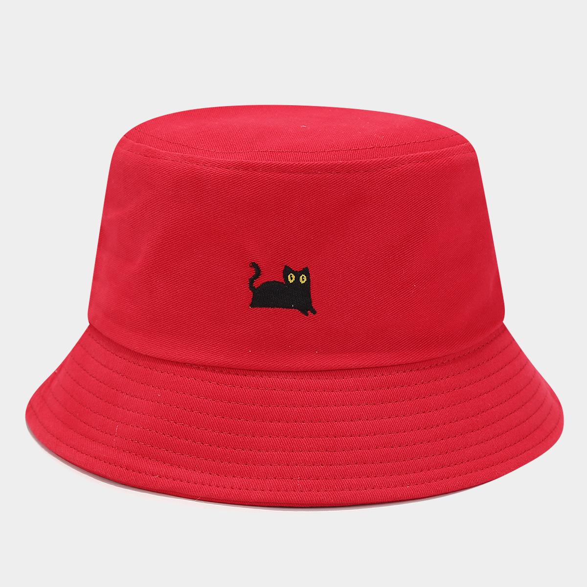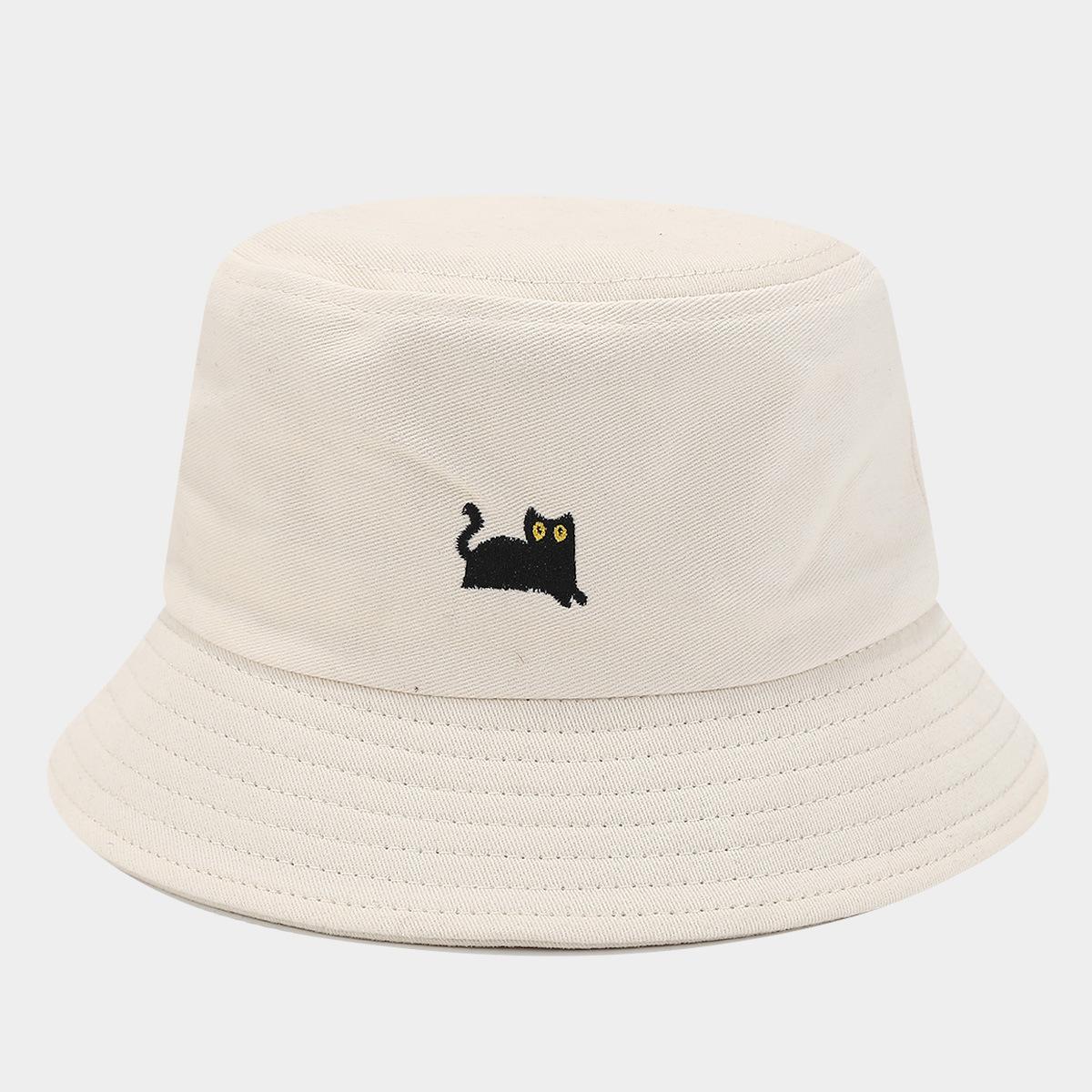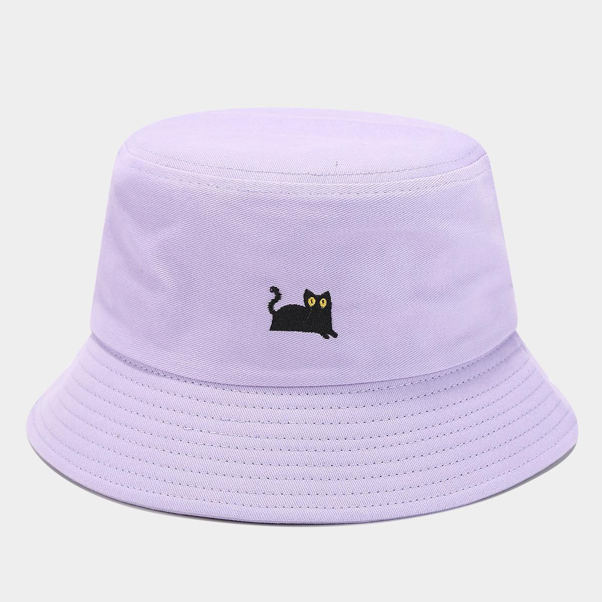 Sombrero de Pescador Bordado de Gato Negro Pequeño Fresco Lindo Verano Color Macarrón Moda Transpirable Sombrero de Olla Sombrero de Pareja de Estudiante