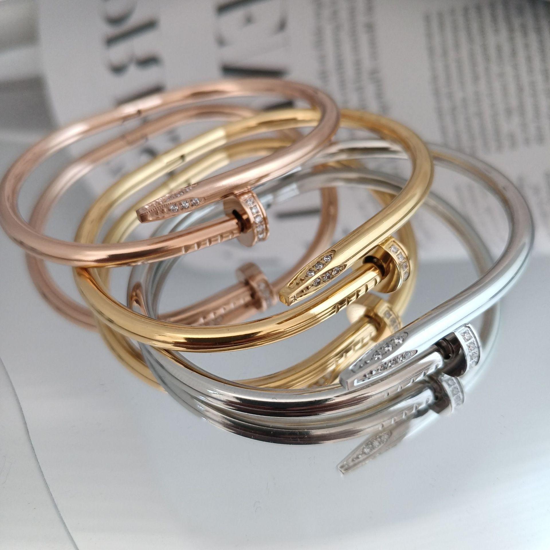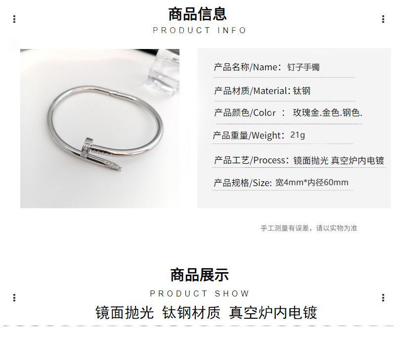Fabricante en stock Moda europea, americana, japonesa y coreana Pulsera de uñas de acero inoxidable de lujo ligero acero de titanio que no se decolora pulsera abierta