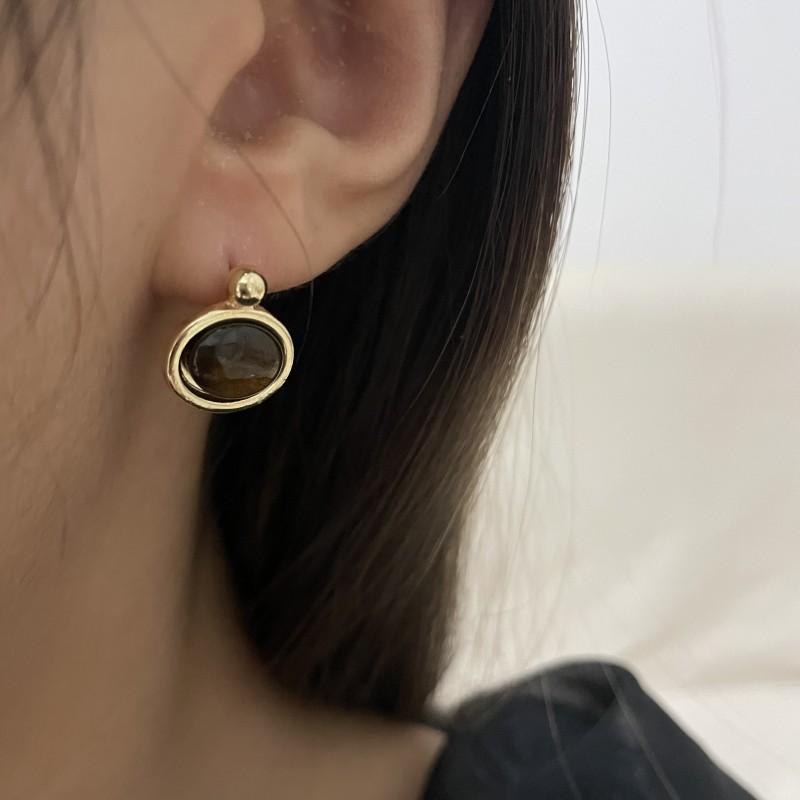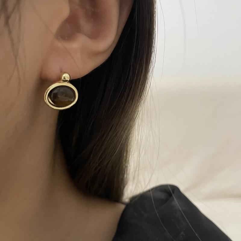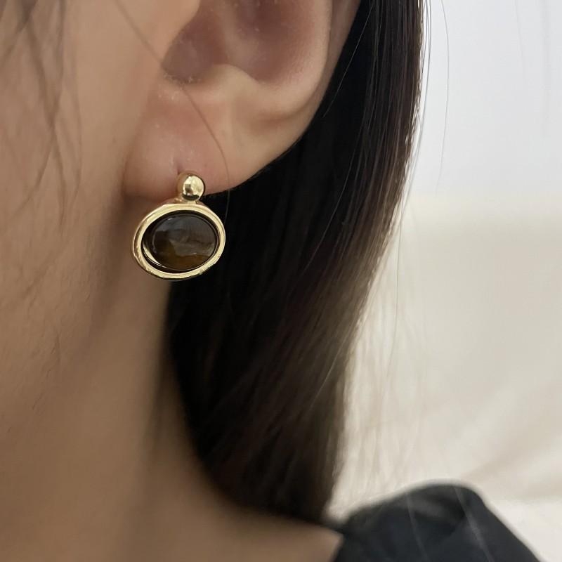 Pendientes geométricos de piedra de ojo de tigre, sencillos y elegantes, de moda, para mujer, de lujo, estilo retro, de nicho, de alta calidad, joyería para las orejas