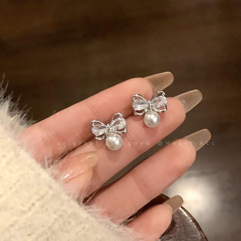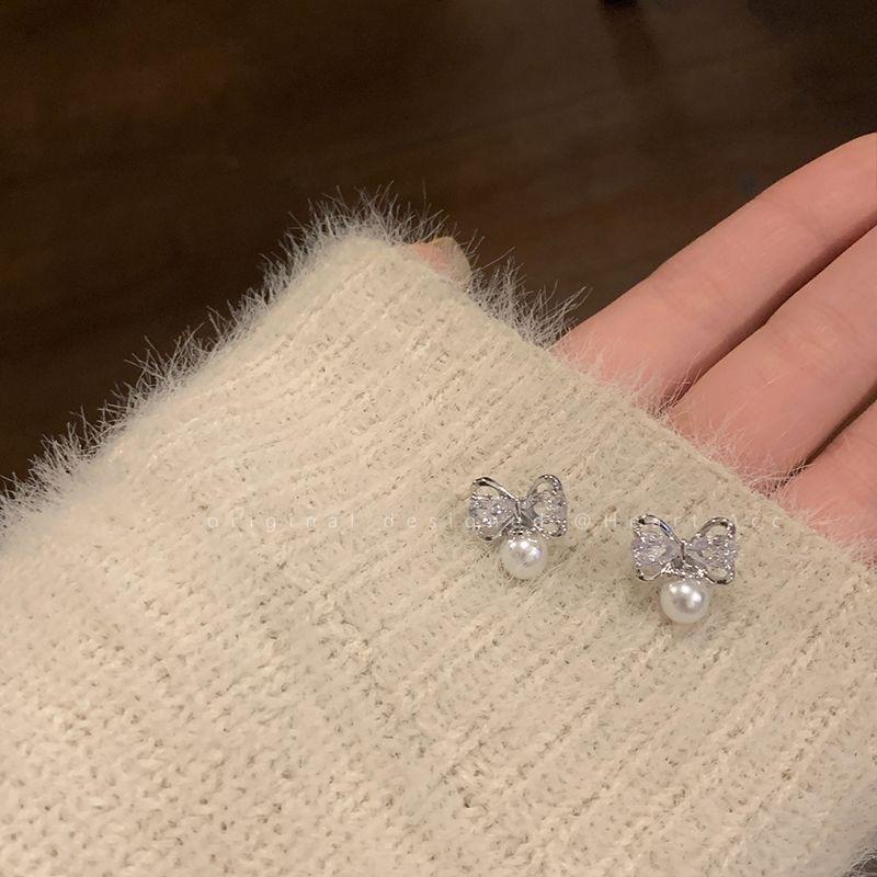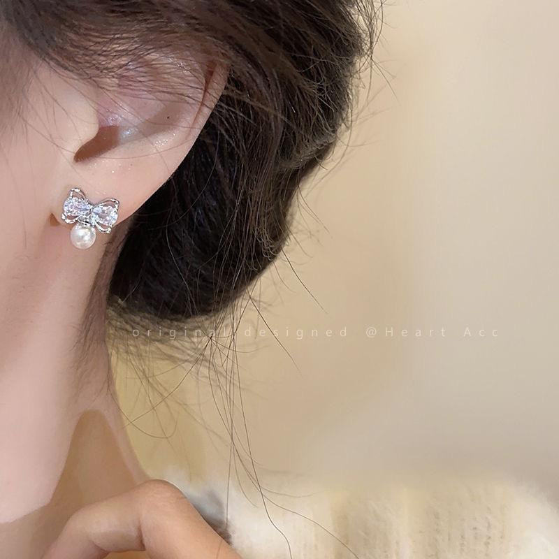 Pendientes de botón con forma de perla y lazo para mujer, pequeños y exquisitos, de alta calidad, 2023, nuevos pendientes de moda que combinan con todo.