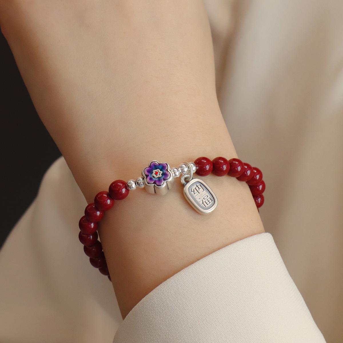 Pulsera de cinabrio de alto contenido con destello mineral, plata s925, cera de abejas, jade hetiano, accesorios, pulsera para hombres y mujeres, pulsera de un solo círculo.