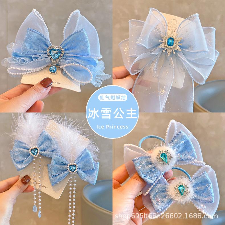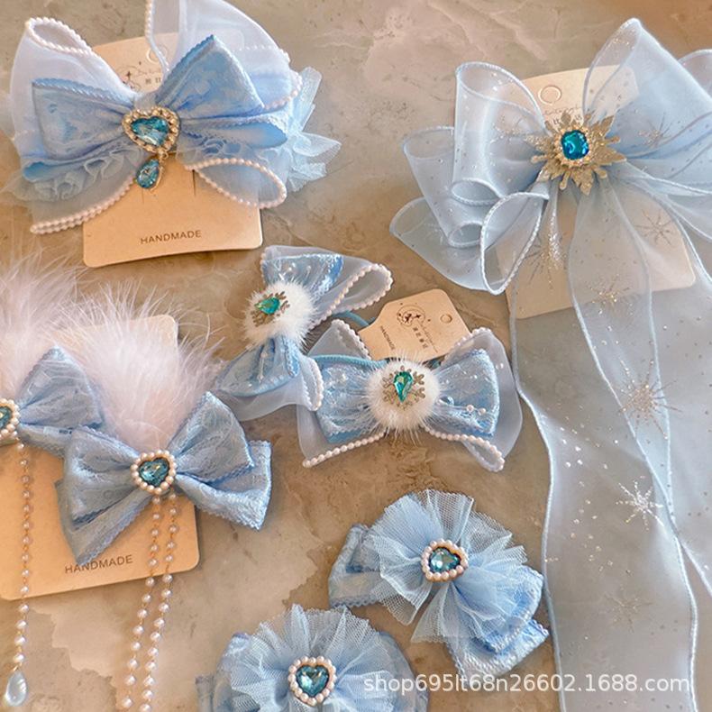 Moño de Aisha Princesa de Hielo Azul Accesorios para el Cabello de Niños Horquilla Grande Horquilla Diadema Cuerda para el Cabello Adorno para la Cabeza de Niñas