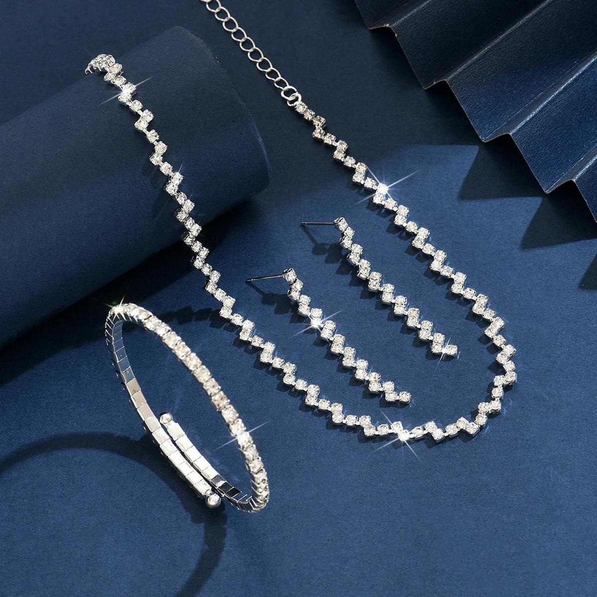 Venta Caliente Transfronteriza Cadena de Garra Joyería Nupcial Collar Aretes Pulsera Traje Conjunto de Tres Piezas Cadena Clavícula Accesorios Vestido de Cena