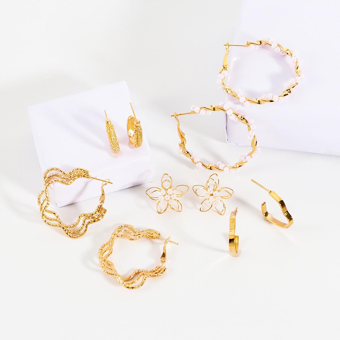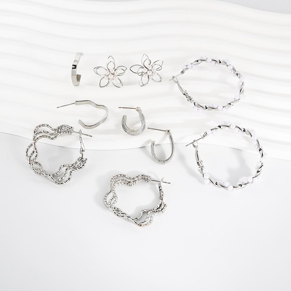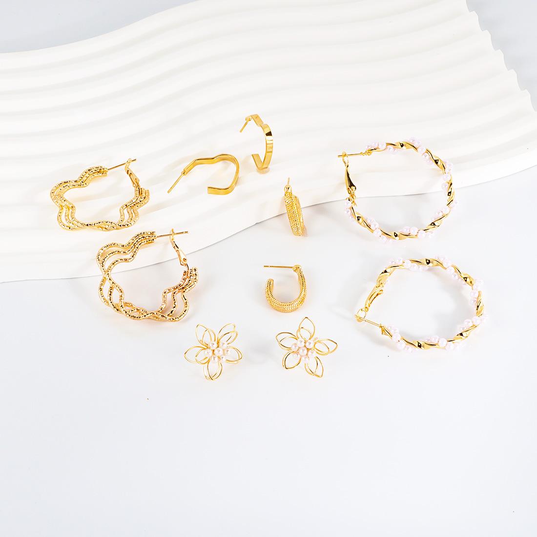 Pendientes de estilo europeo y americano transfronterizos Conjunto de pendientes de cinco piezas Pendientes de flores de moda simples para mujer F26000