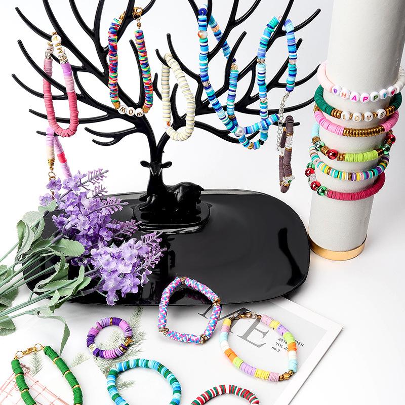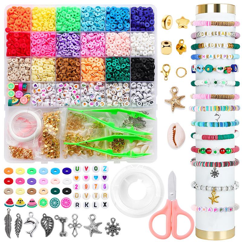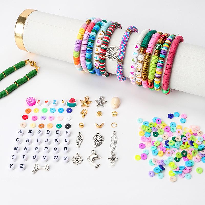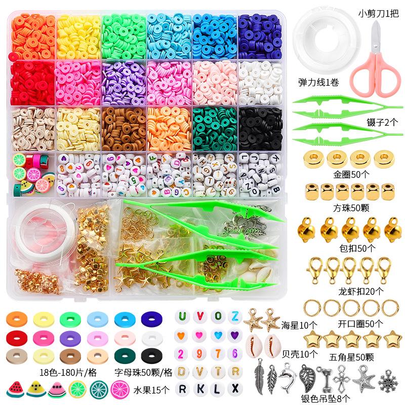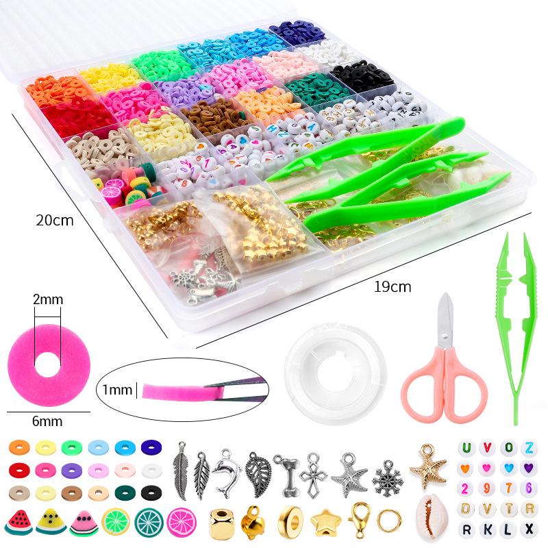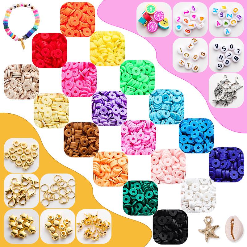 26 Cuadrículas Estilo Bohemio DIY Cuentas de Arcilla Polimérica Accesorios Cuentas de Letras Pulsera de Cuerda Cuentas Sueltas Separadores Set de Arcilla Polimérica