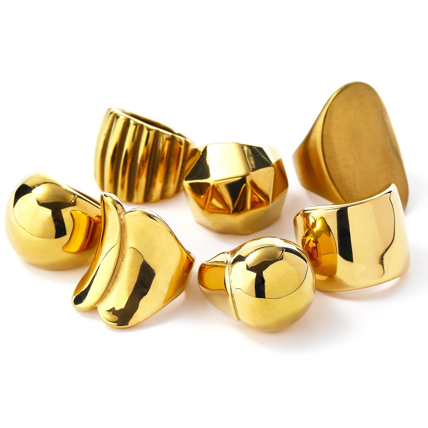 Anillo de lujo ligero, geométrico exagerado, de moda europea y americana, para mujer, nicho avanzado, anillo de acero de titanio chapado en oro de 18 quilates, venta directa.
