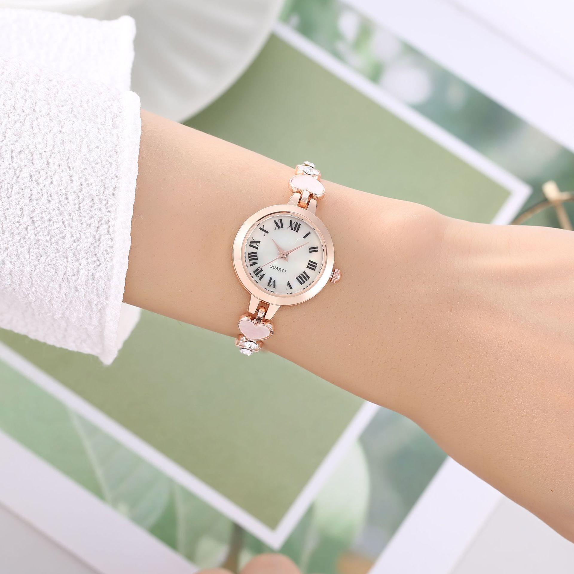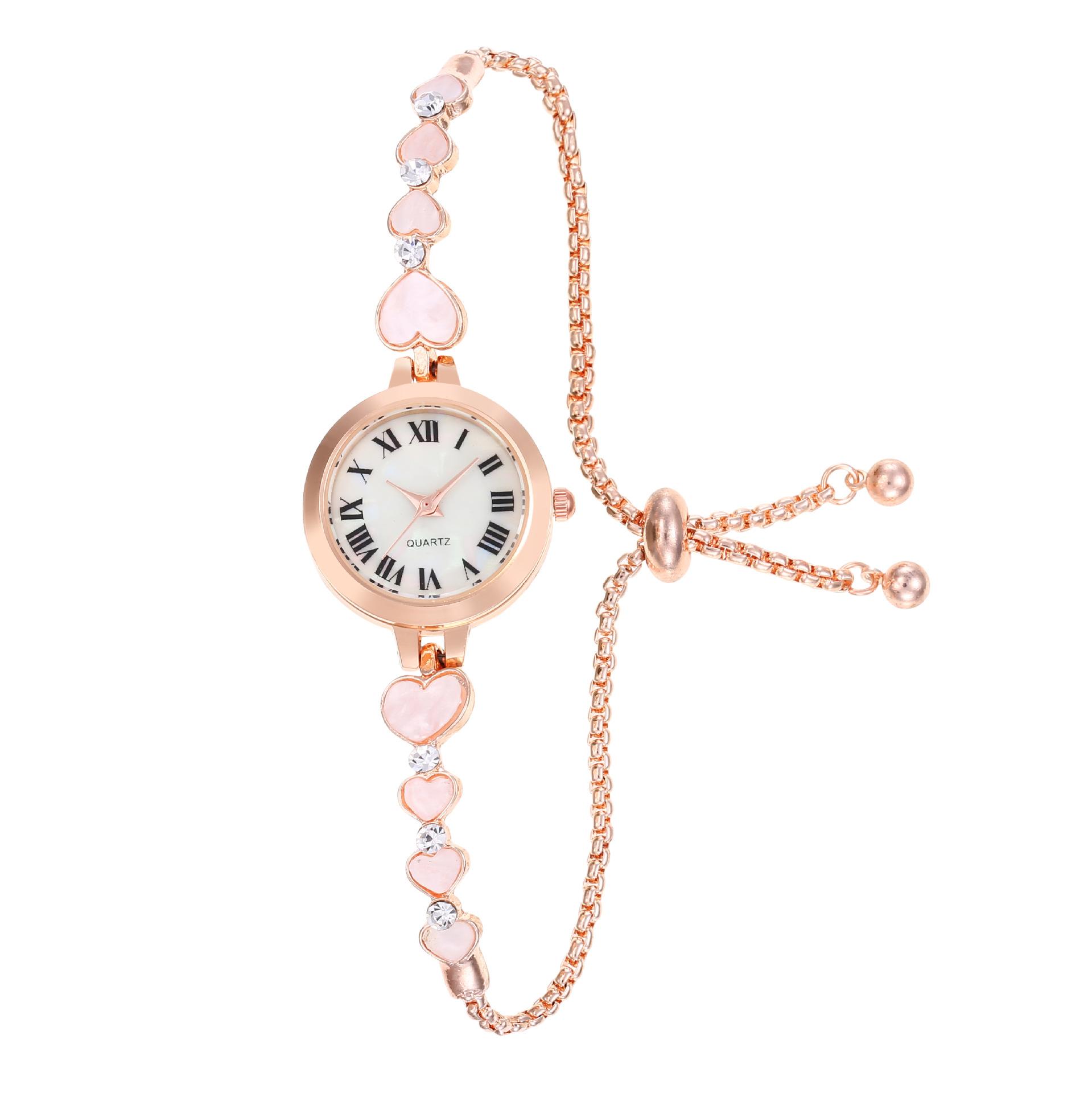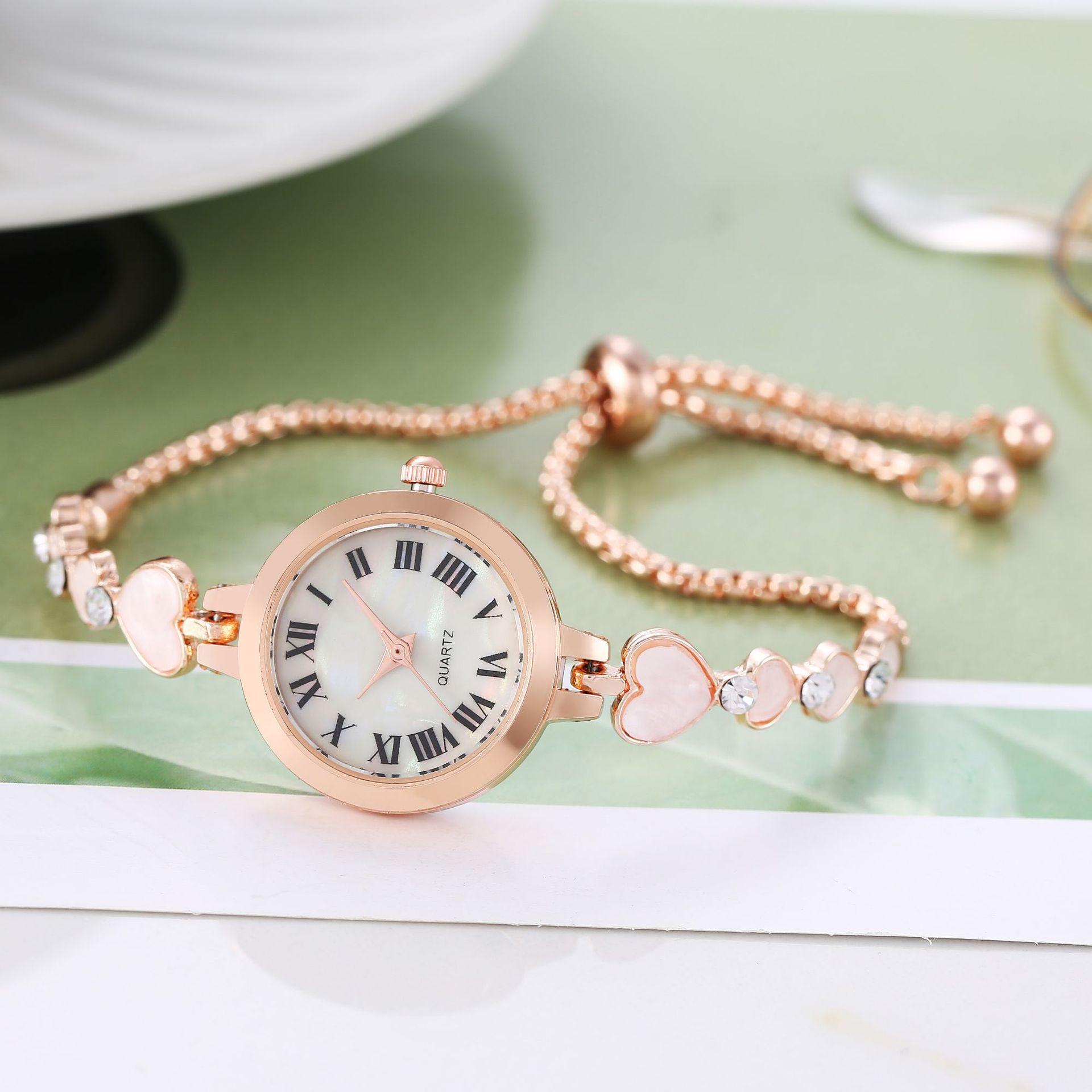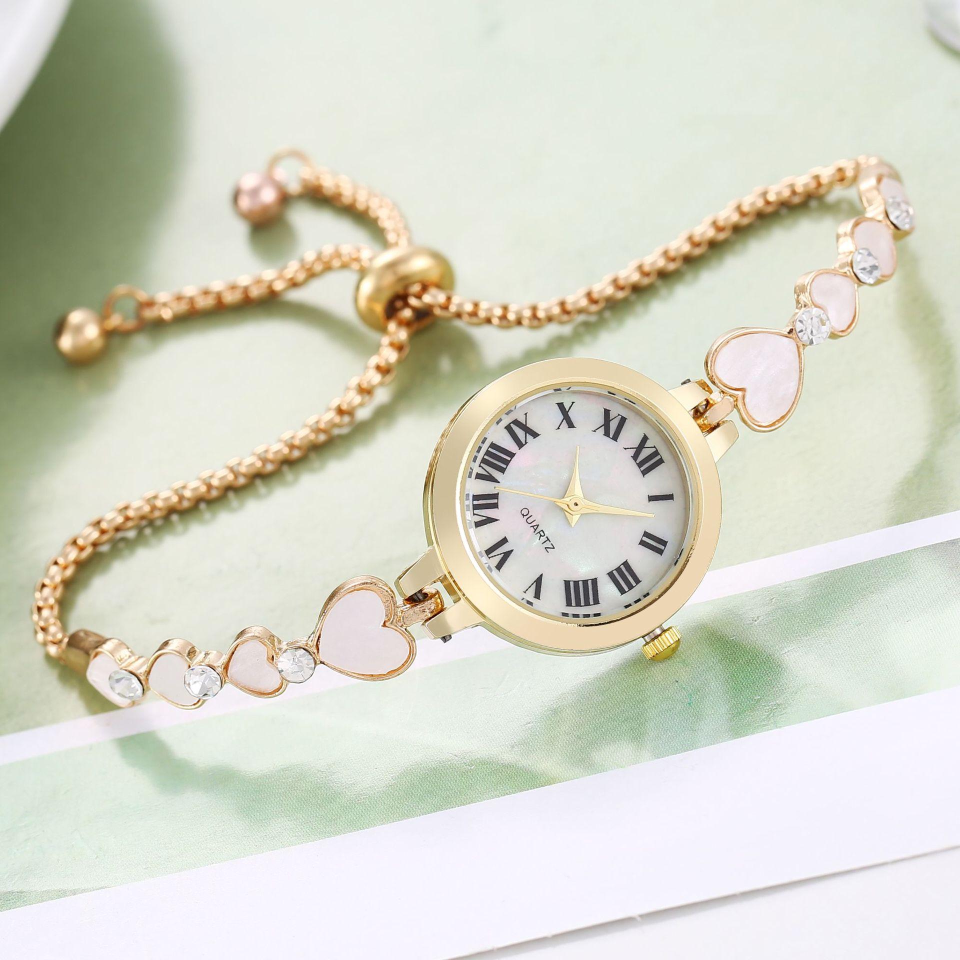 Reloj de pulsera con correa fina y corazón de amor para mujer, con diamantes de imitación y esfera pequeña, reloj de pulsera retráctil y ajustable.