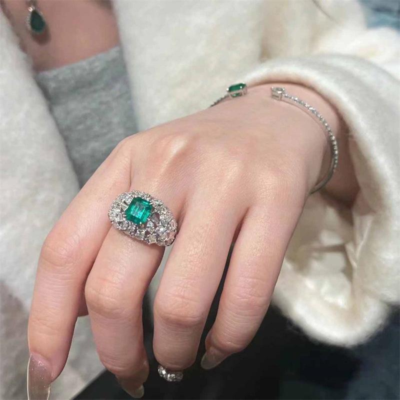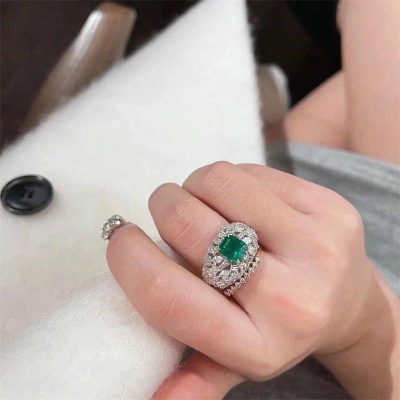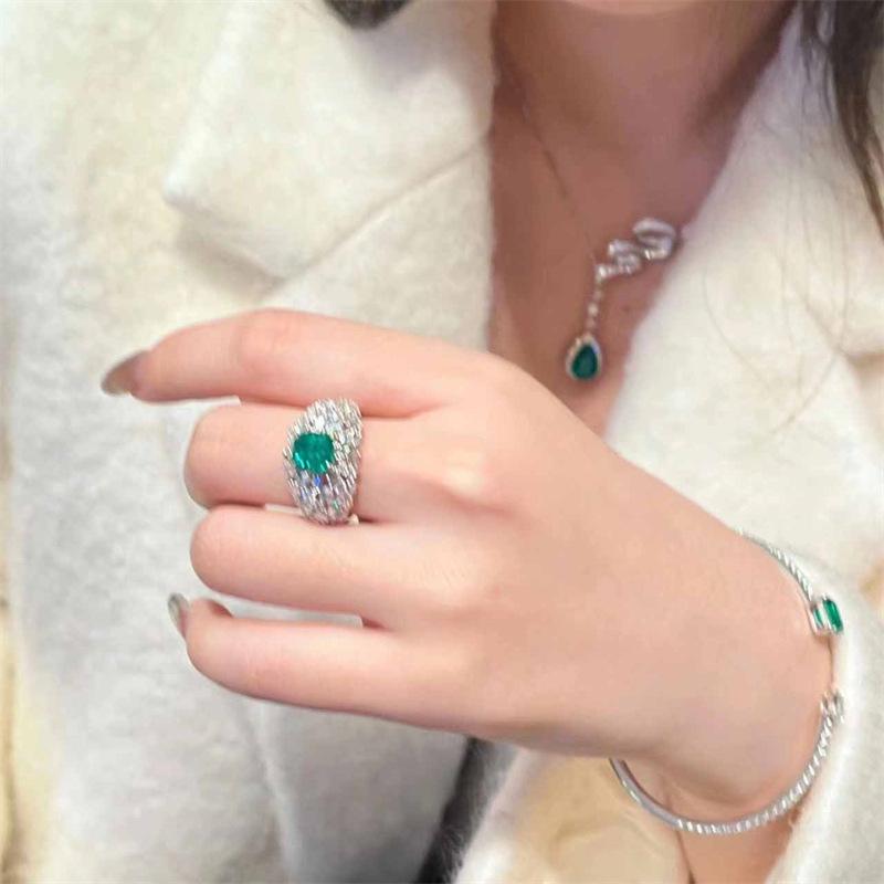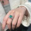 Pulsera de anillo de esmeralda retro de gran oferta europea y americana con apertura ajustable para mujer, anillo de nicho de temperamento ligero de lujo de alto grado