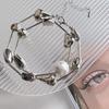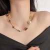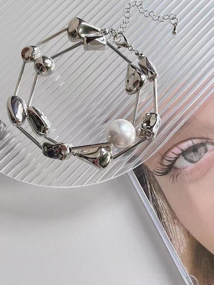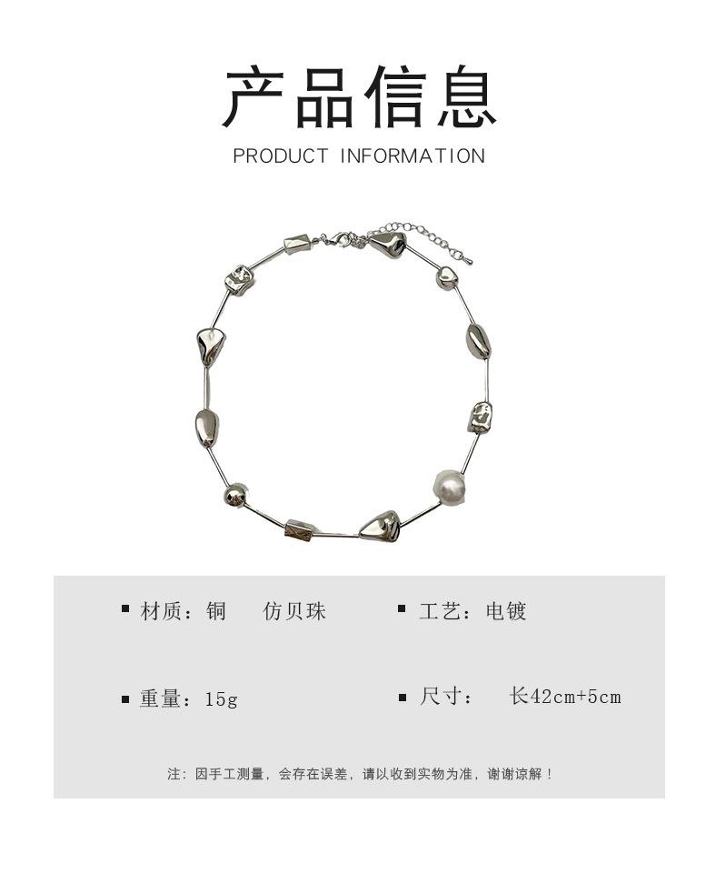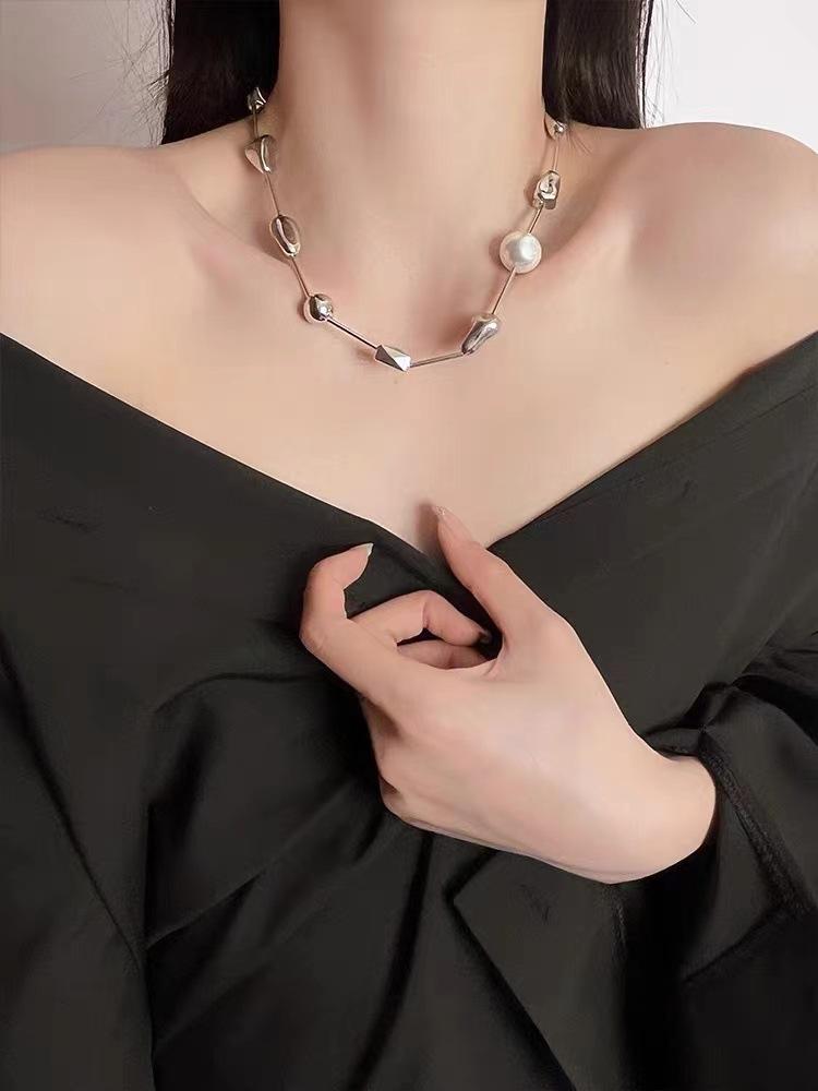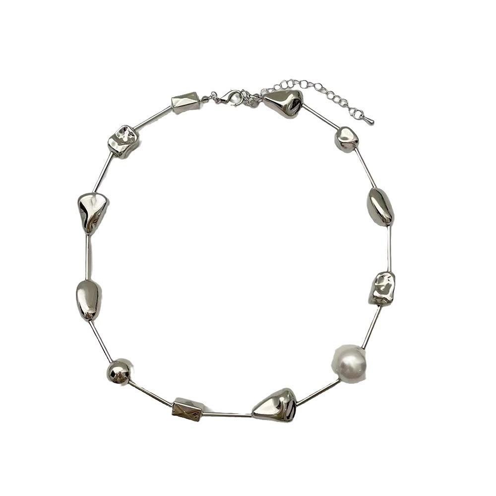 Collar de perlas con costuras de metal irregulares y elegantes de estilo retro para mujer, cadena de clavícula con efecto piedra geométrica de viento frío, cadena de moda