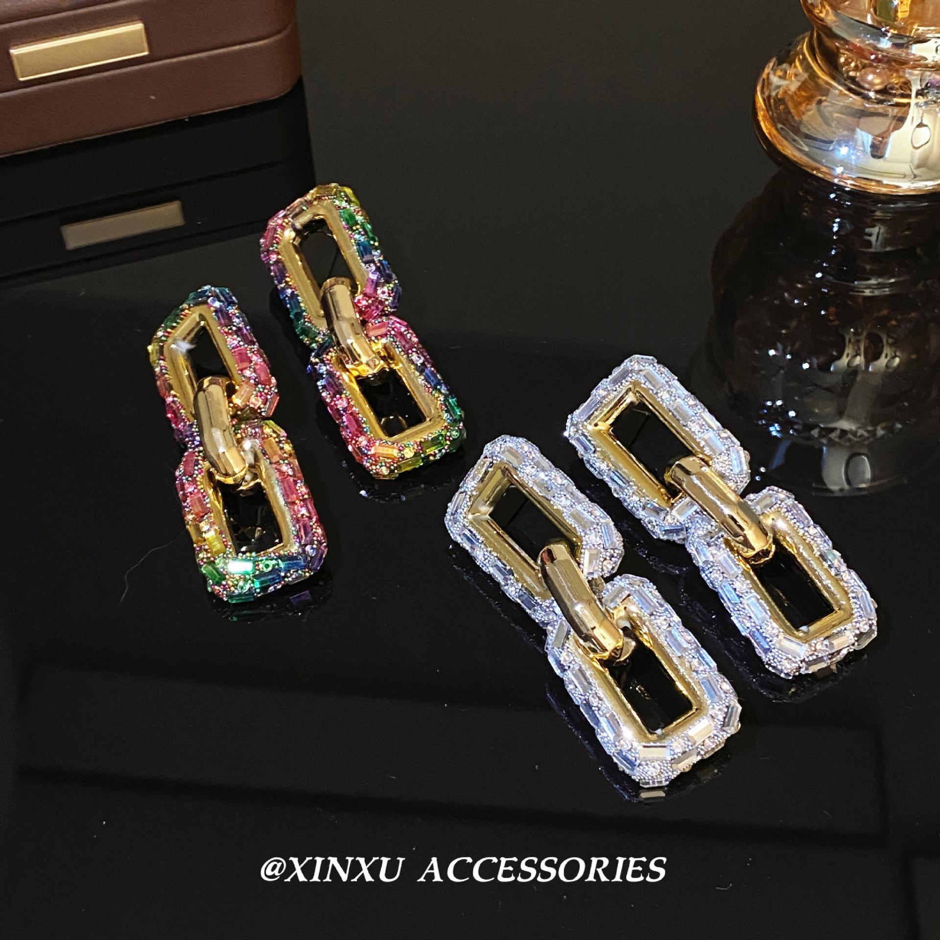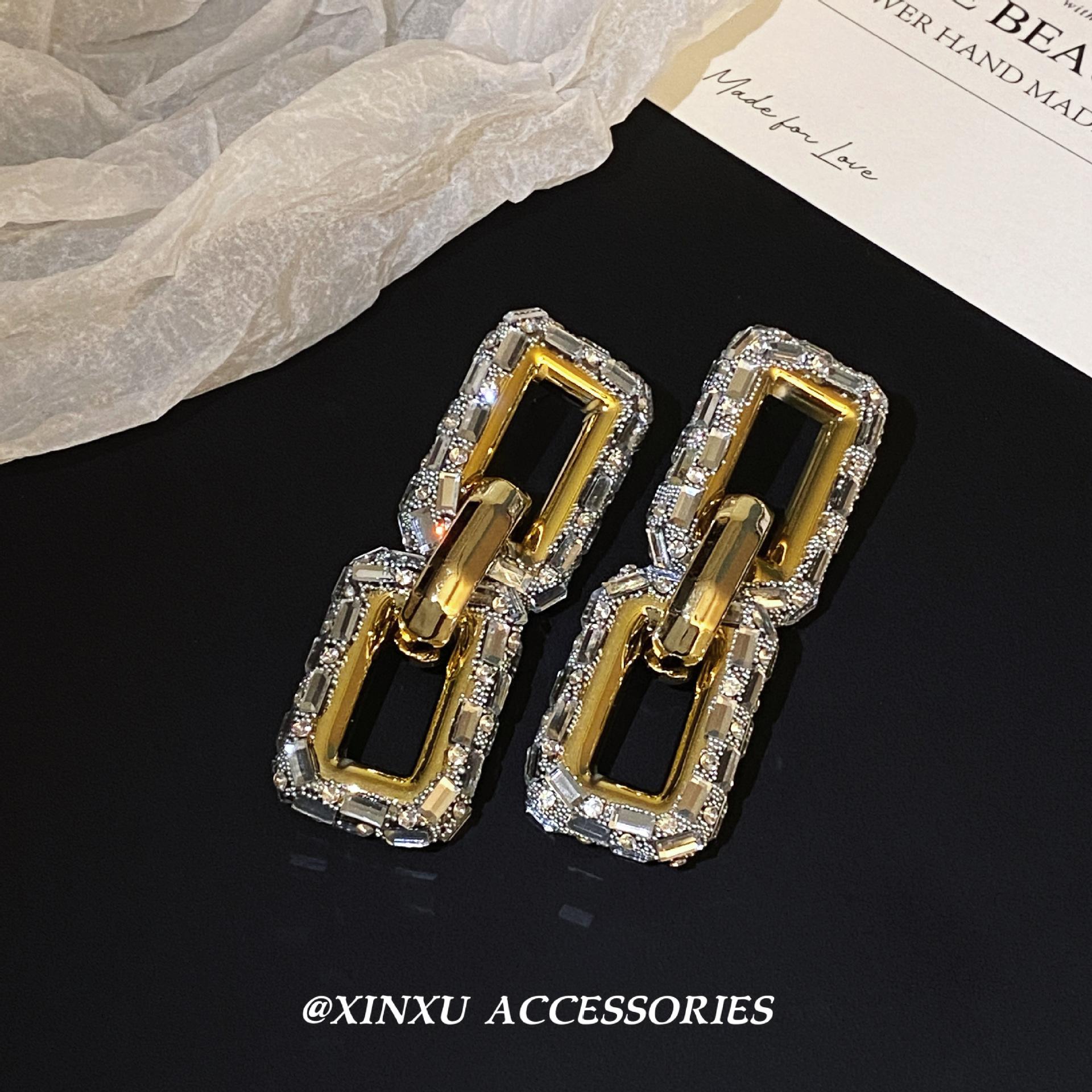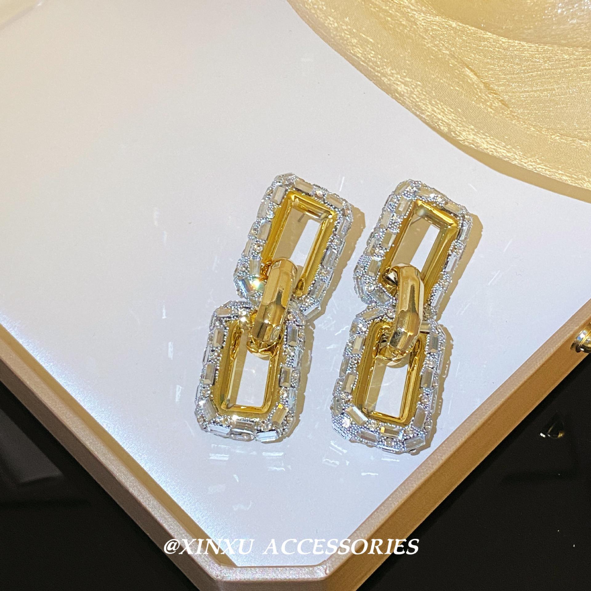 Compra Nuevos pendientes de cadena con forma de caja geométrica europea y americana, con personalidad de temperamento exagerada, de alto sentido, de nicho, sencillos y versátiles. al por mayor en Joom.pro