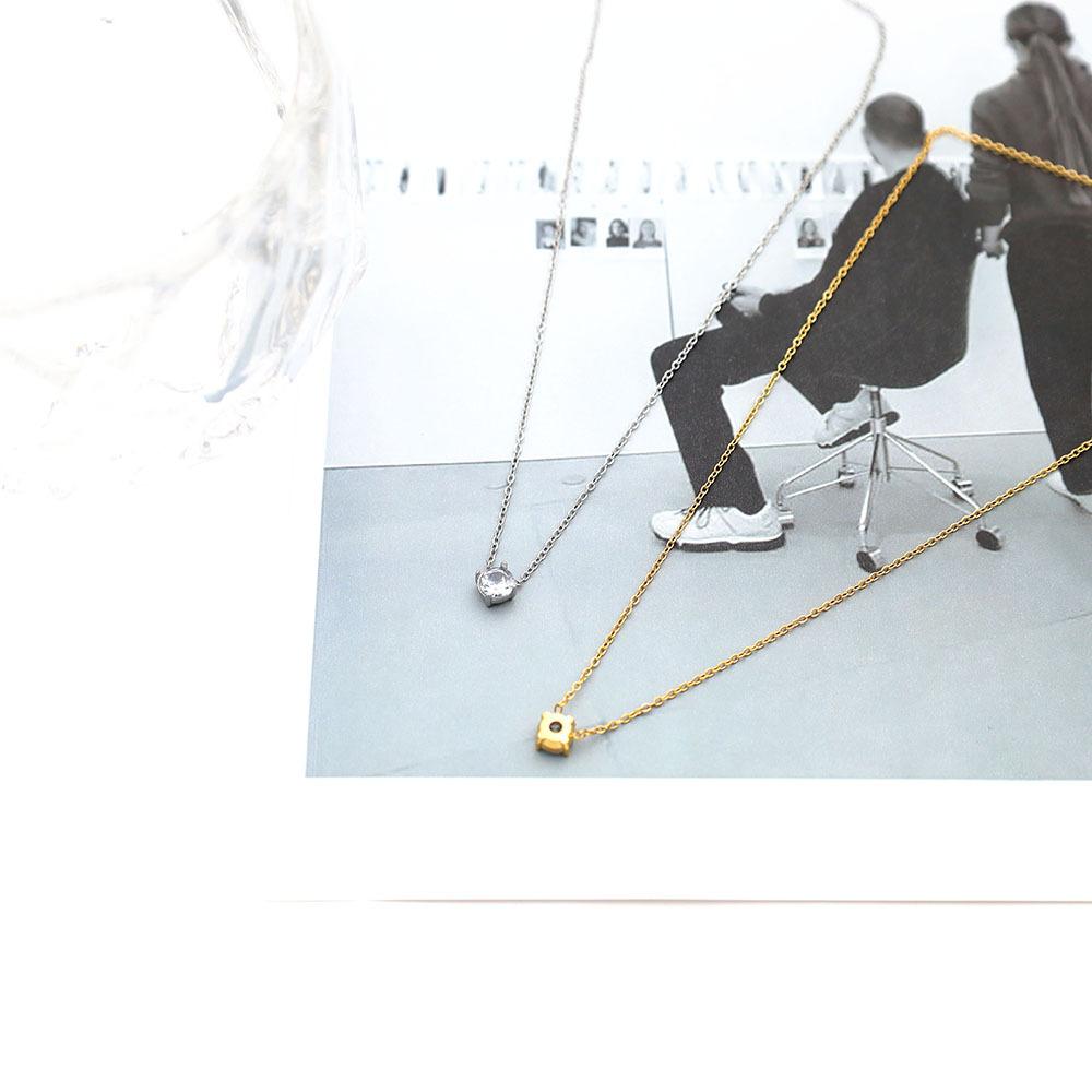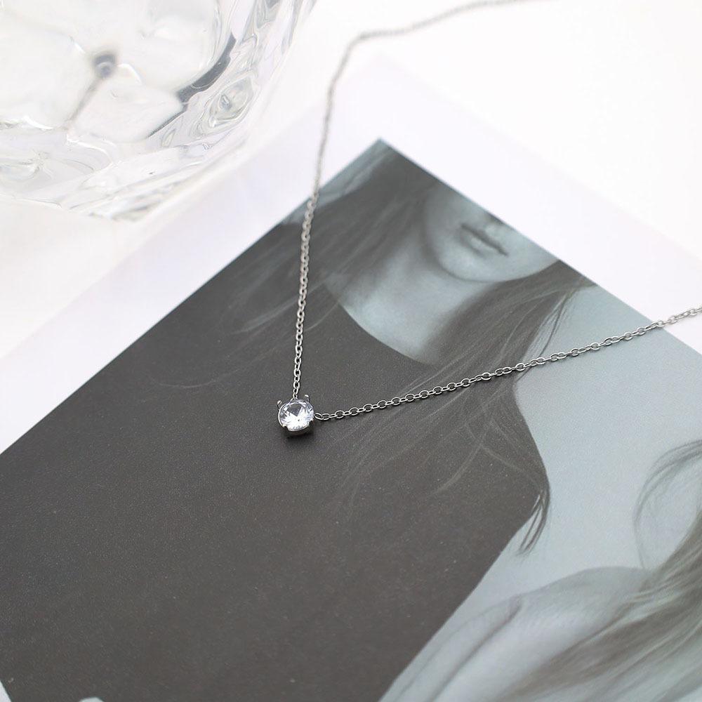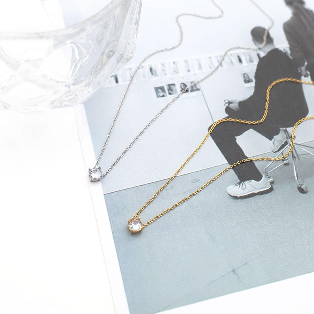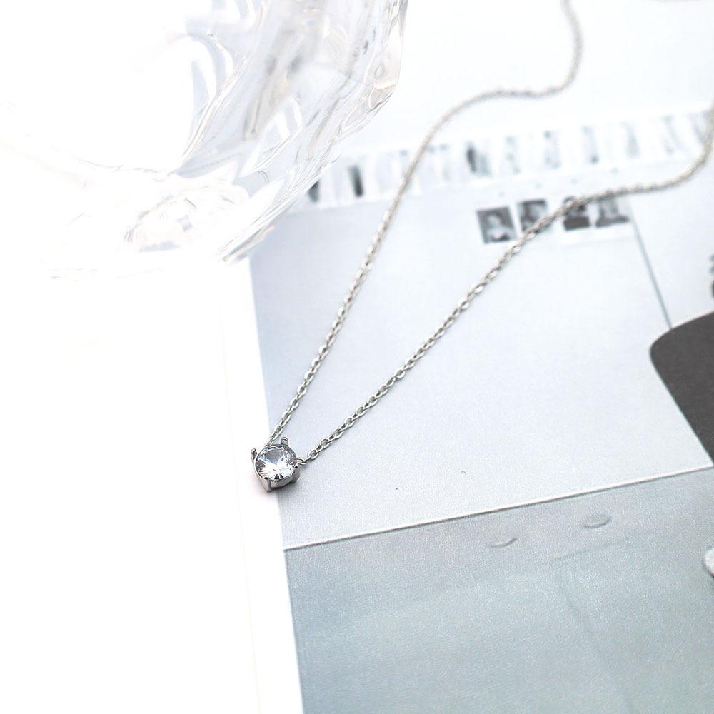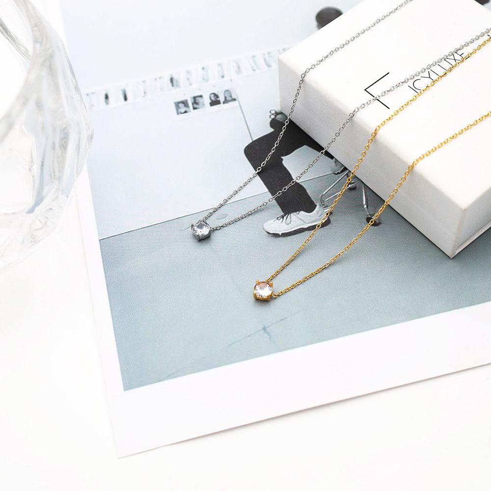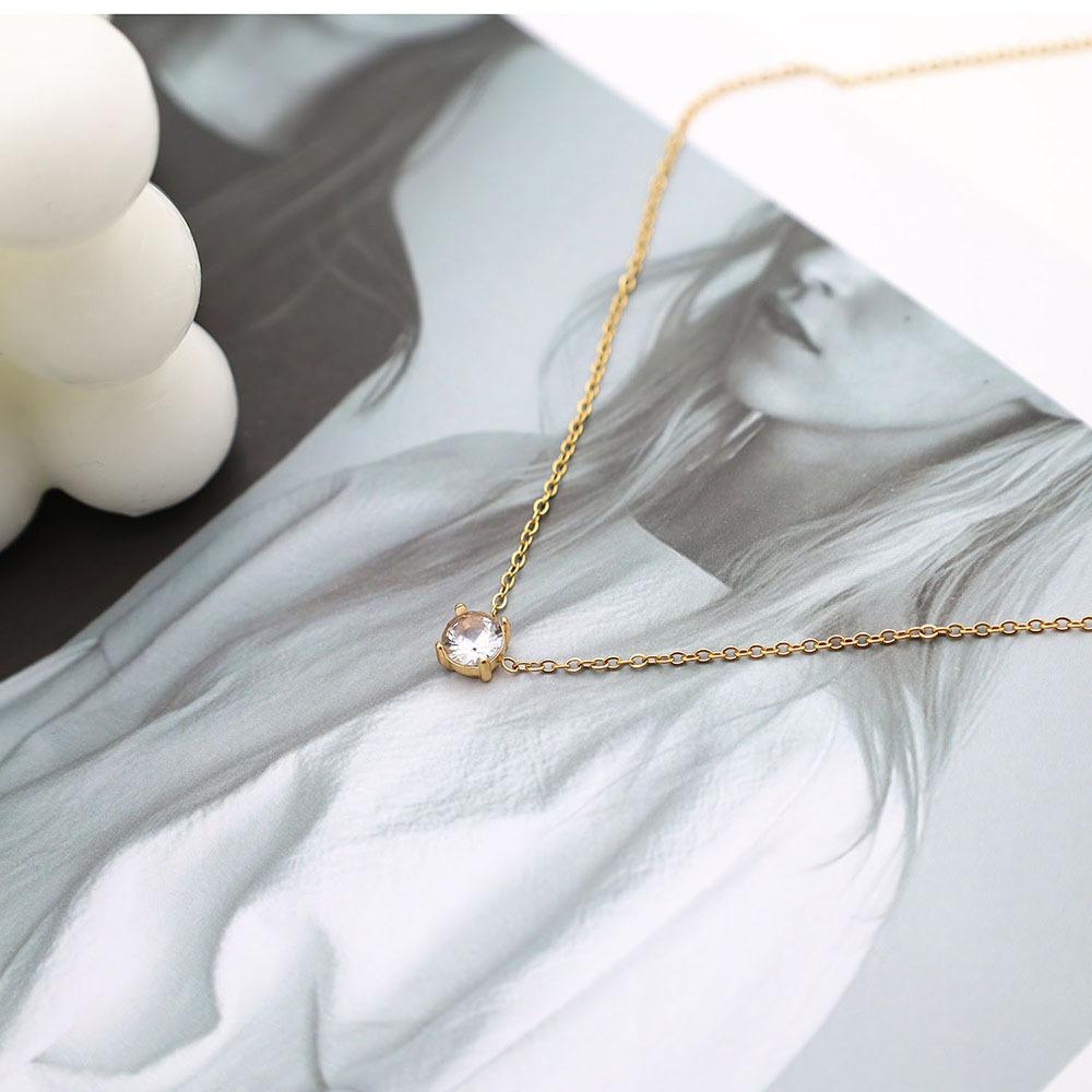Cadena de clavícula de oro de 18 quilates, sencilla y de moda europea y americana, pequeño y exquisito collar de circonita redonda de cuatro garras de acero inoxidable para mujer, combina con todo.