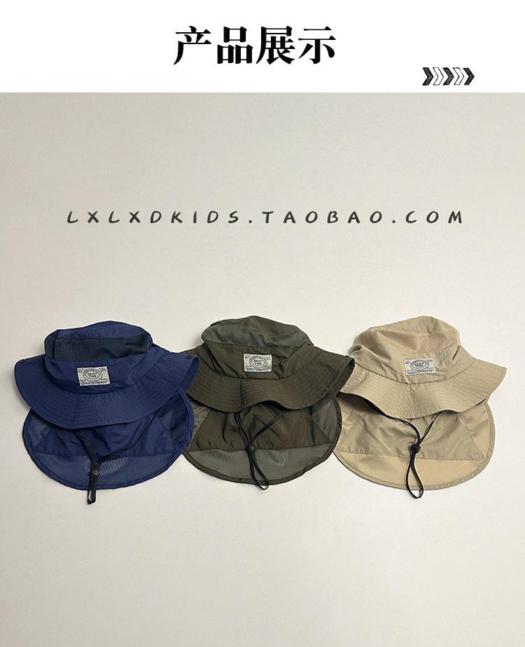 Sombrero de verano para niños, fino, de secado rápido, con chal, protección para el cuello, ala grande, parasol, sombrero de pescador para niños y niñas, moderno