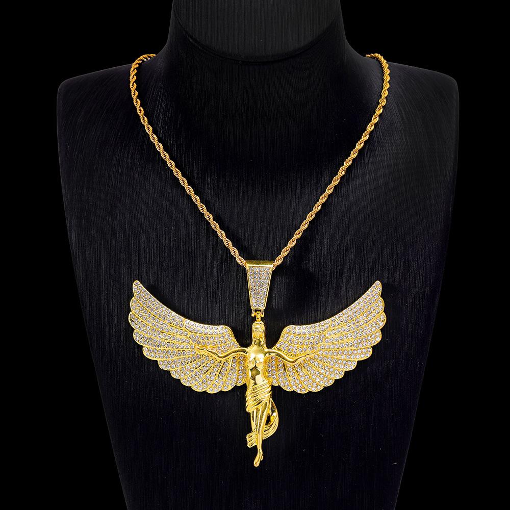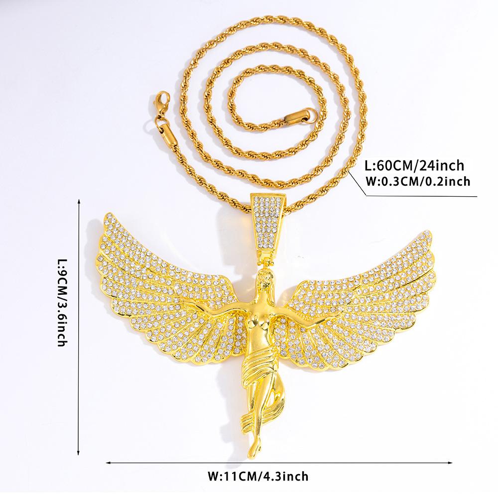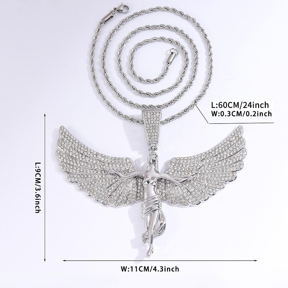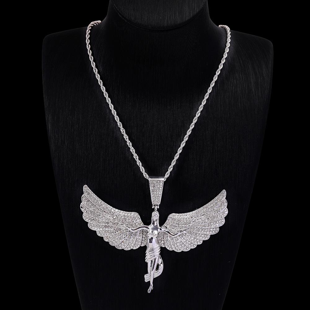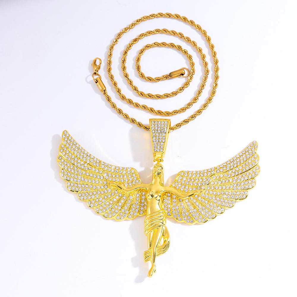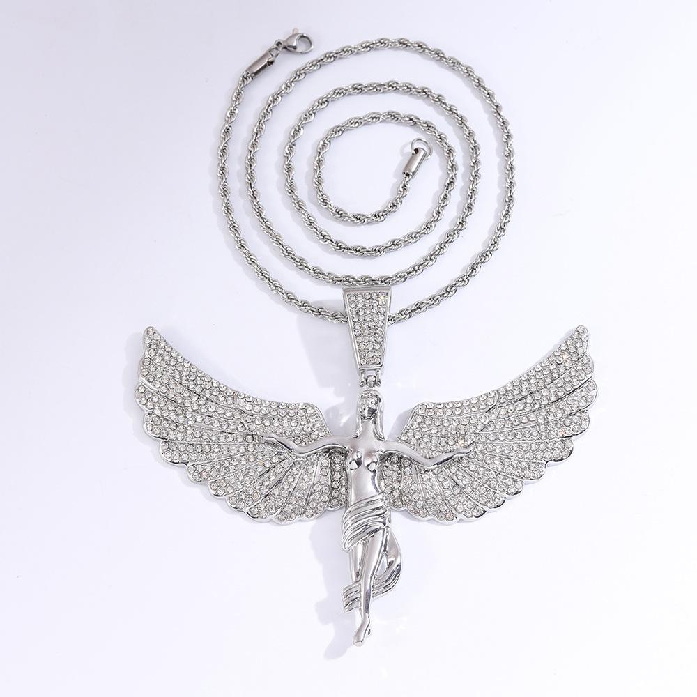 Collar con colgante grande de aleación de zinc con alas de ángel de diamantes, estilo hip hop, personalizado, cadena sencilla, estilo europeo y americano, gran oferta