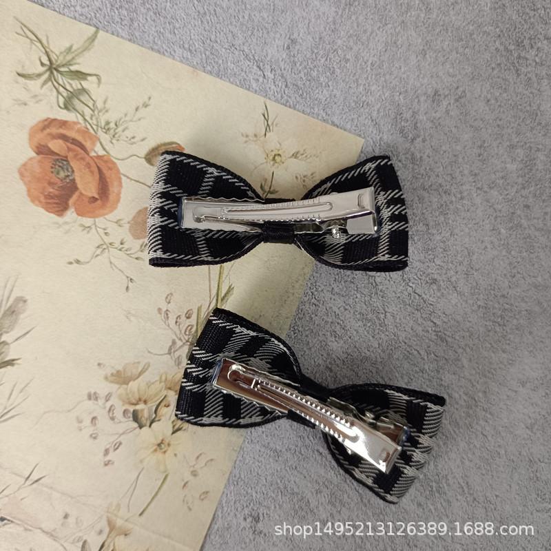 Horquilla de estilo coreano para niña, sencilla y bonita, con lazo mini a cuadros negros, pinza para el flequillo, accesorios para el cabello
