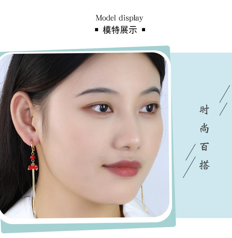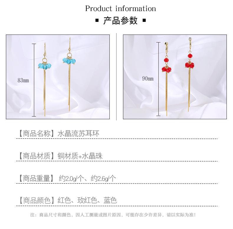 Crystal tassel earrings/No hanging beads [Red Spring ear clip]]