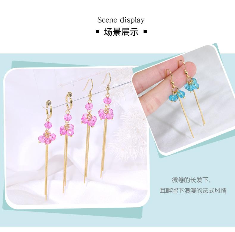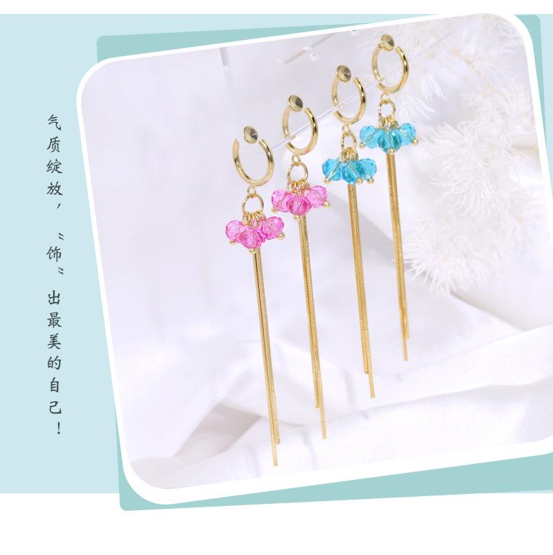 Crystal tassel earrings/No hanging beads [Blue Spring ear clip]]