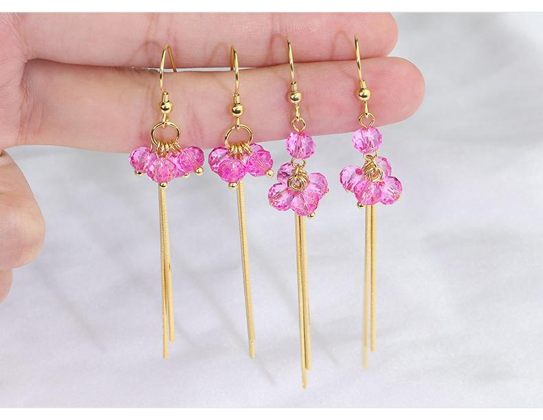 Pendientes de borla de cristal de moda de Corea del Sur, personalidad, temperamento, gancho para la oreja simple, populares, suaves, exquisitos, dulces, pendientes diarios