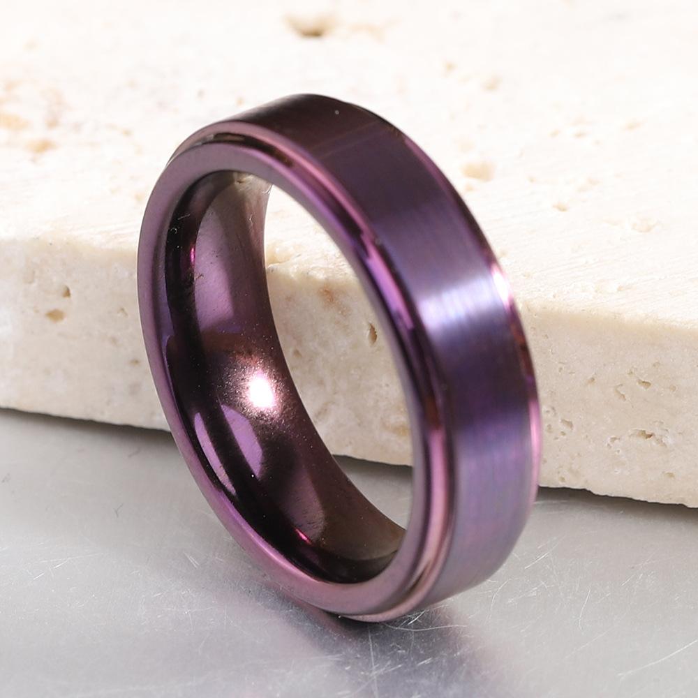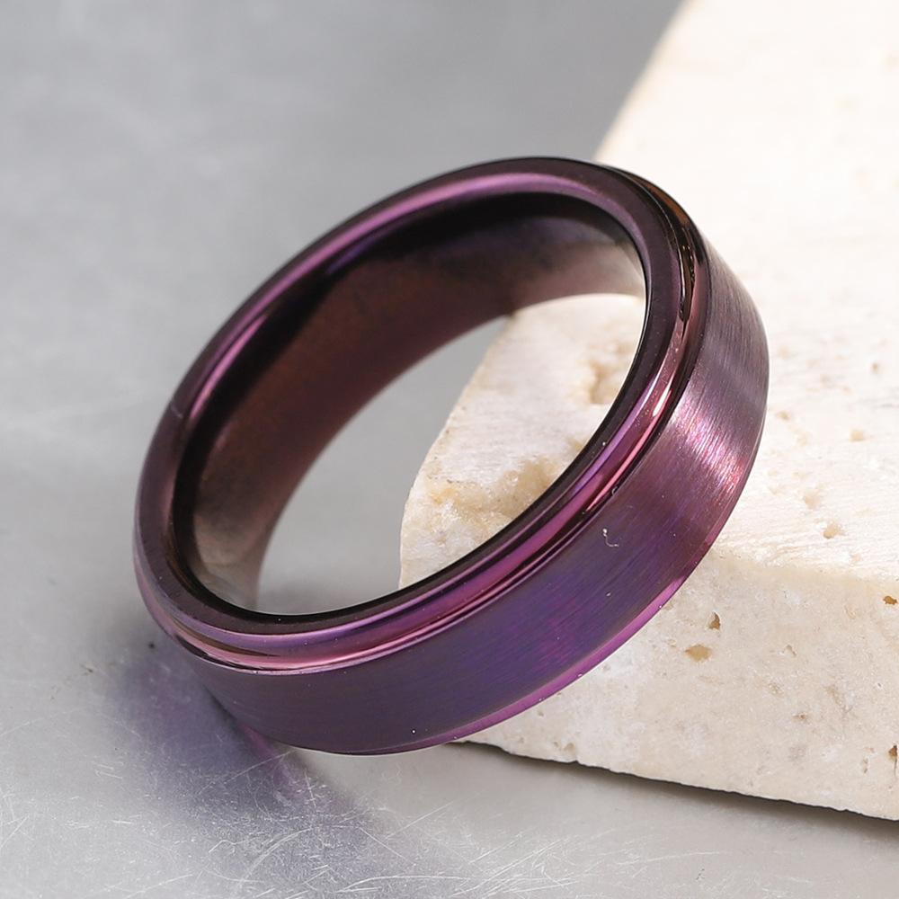 Anillo Europeo y Americano Transfronterizo Nuevo Modelo 4 6 8mm Acero Tungsteno Morado Cepillado Acero Inoxidable Simple y Moderno Tungsteno Oro para Hombre al por Mayor