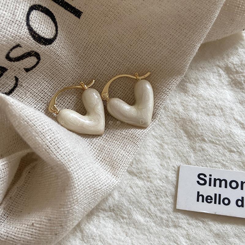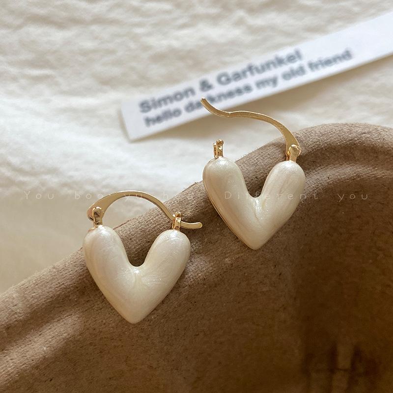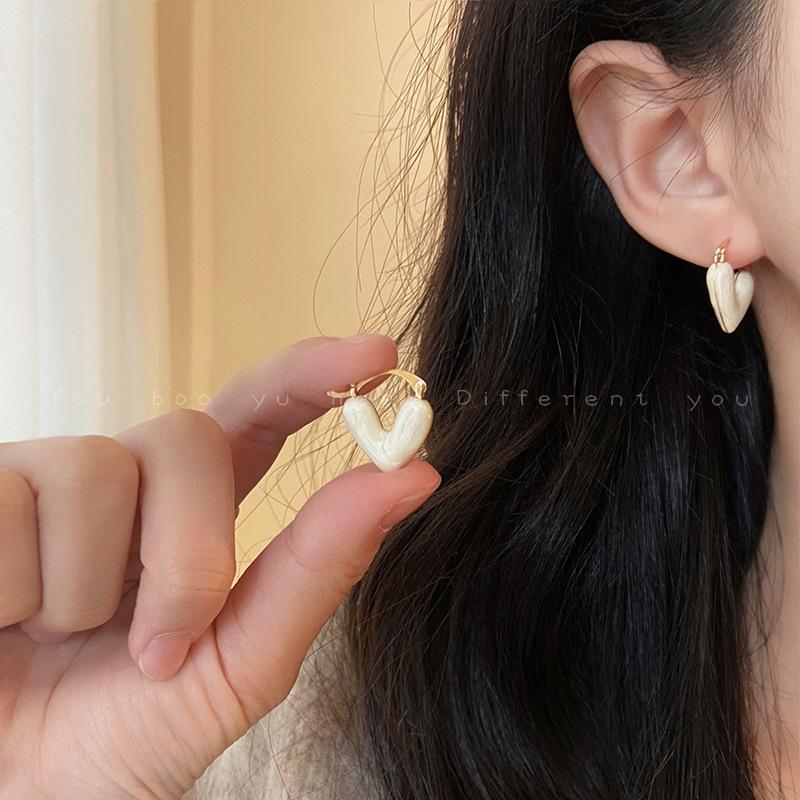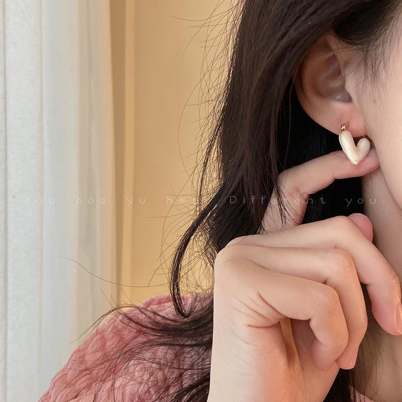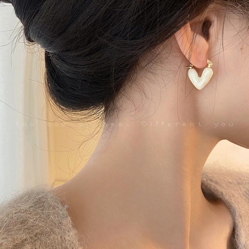 Pendientes de gota de amor francés con hebilla de oreja esmaltada, de alta gama, ligeros, de lujo, únicos, de nicho, de moda, de celebridades de Internet, con forma de corazón de melocotón.