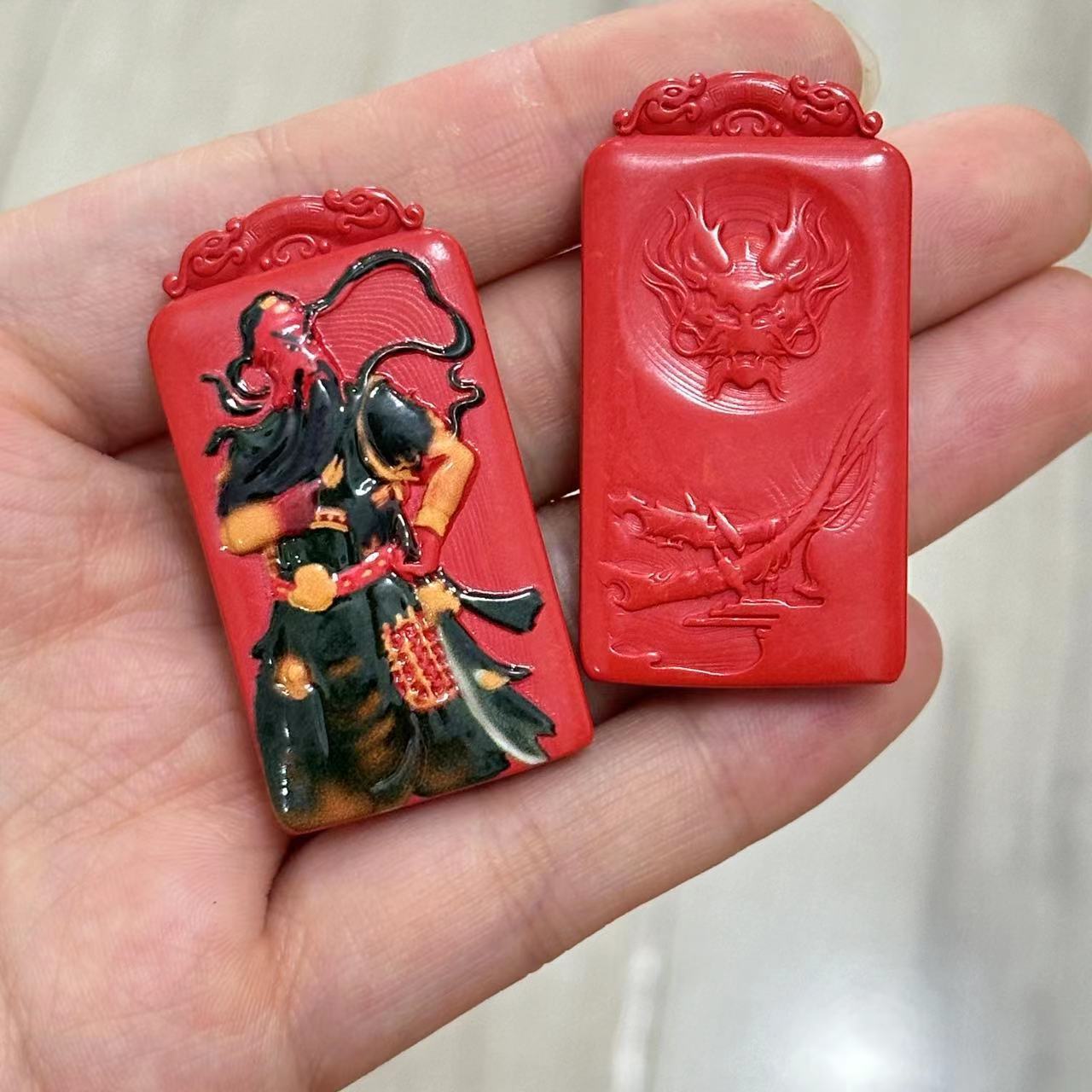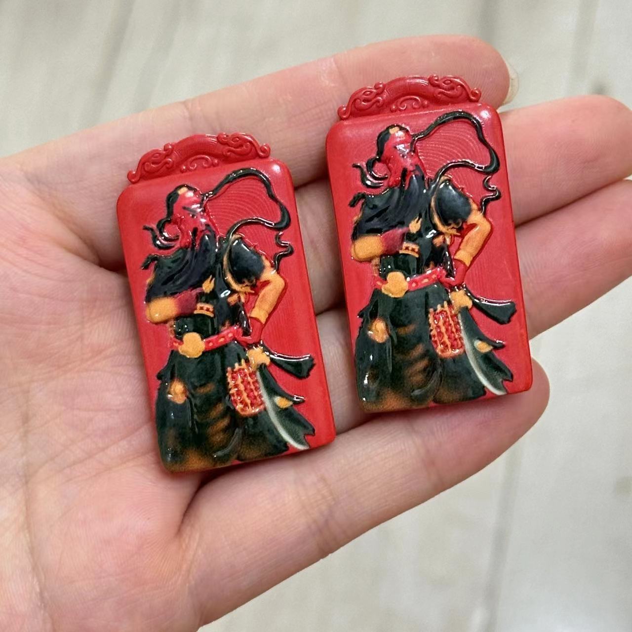 Colgante de Guan Gong Pintado con Arena Roja Cinabrio Bajo Contenido de Cinabrio Accesorios DIY Collar de Cuerda Tejida a Mano Wen Play Buda