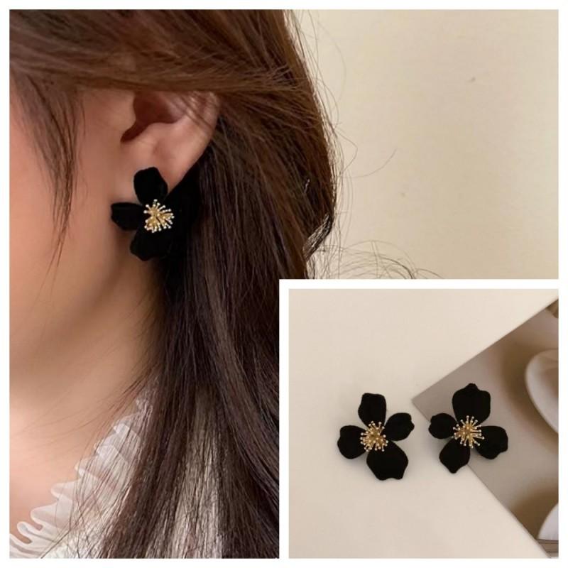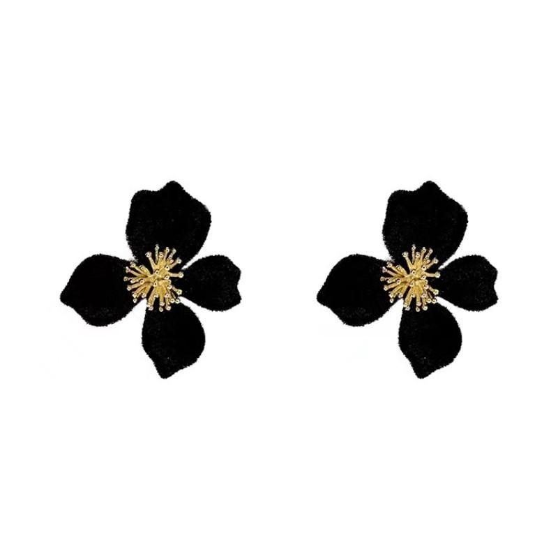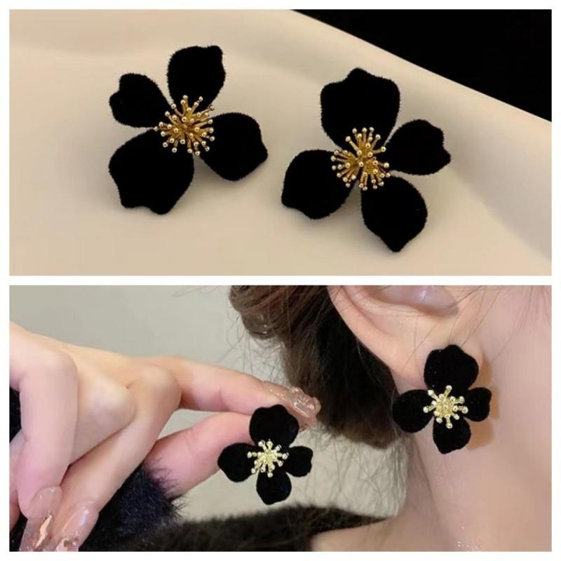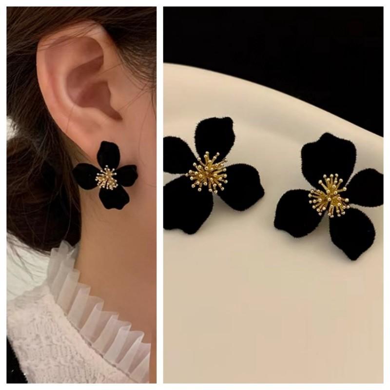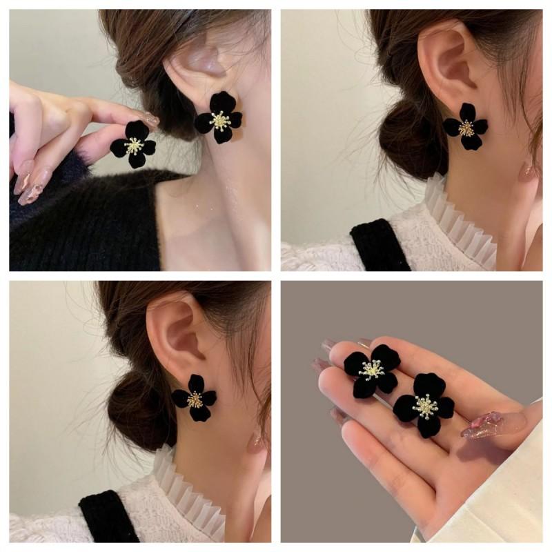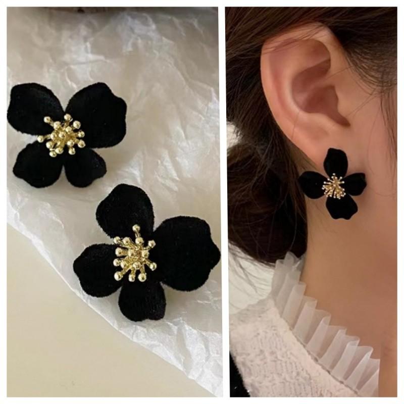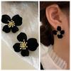 Pendientes elegantes de terciopelo negro con forma de flor de lujo ligeros para mujer, nuevos pendientes de alta gama a la moda, diseño de nicho, joyería para las orejas