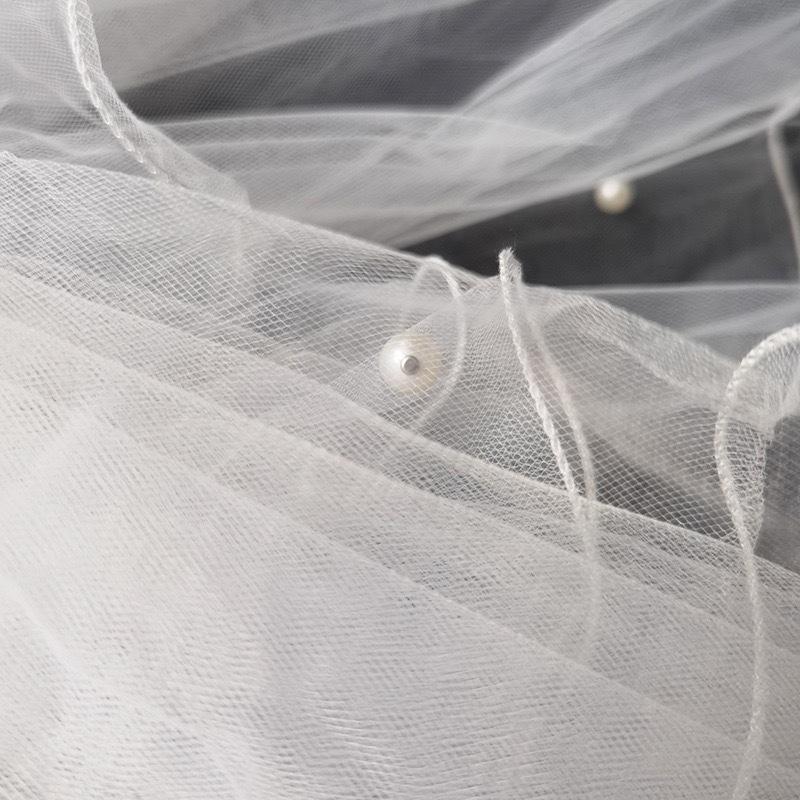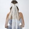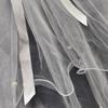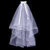 Velo de novia de doble capa con cuentas rojas, lazo, cinta de perlas y rizado, etiqueta de boda, directo de fábrica